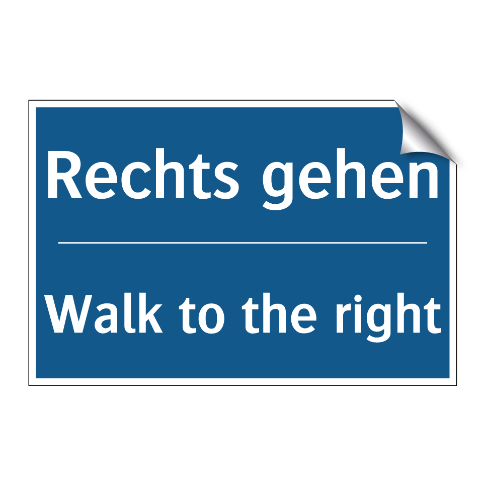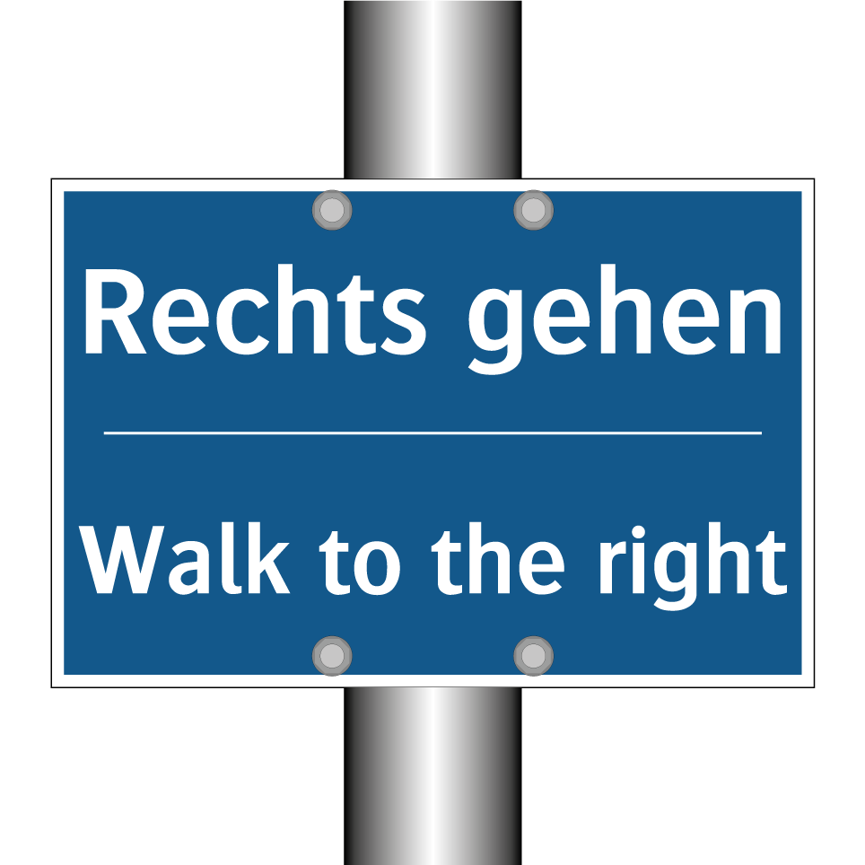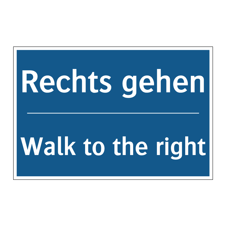 Zweisprachiges Verbotsschild mit deutschem Text Rechts gehen und englischem Text Walk to the right