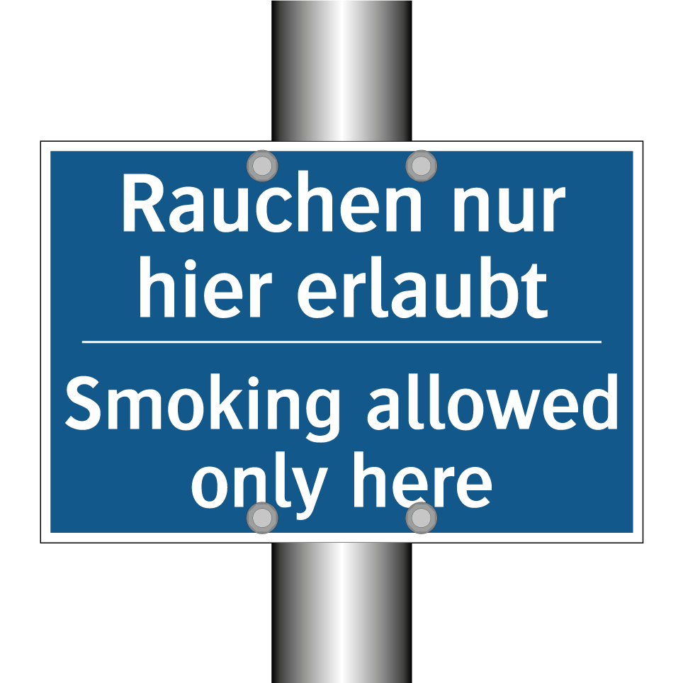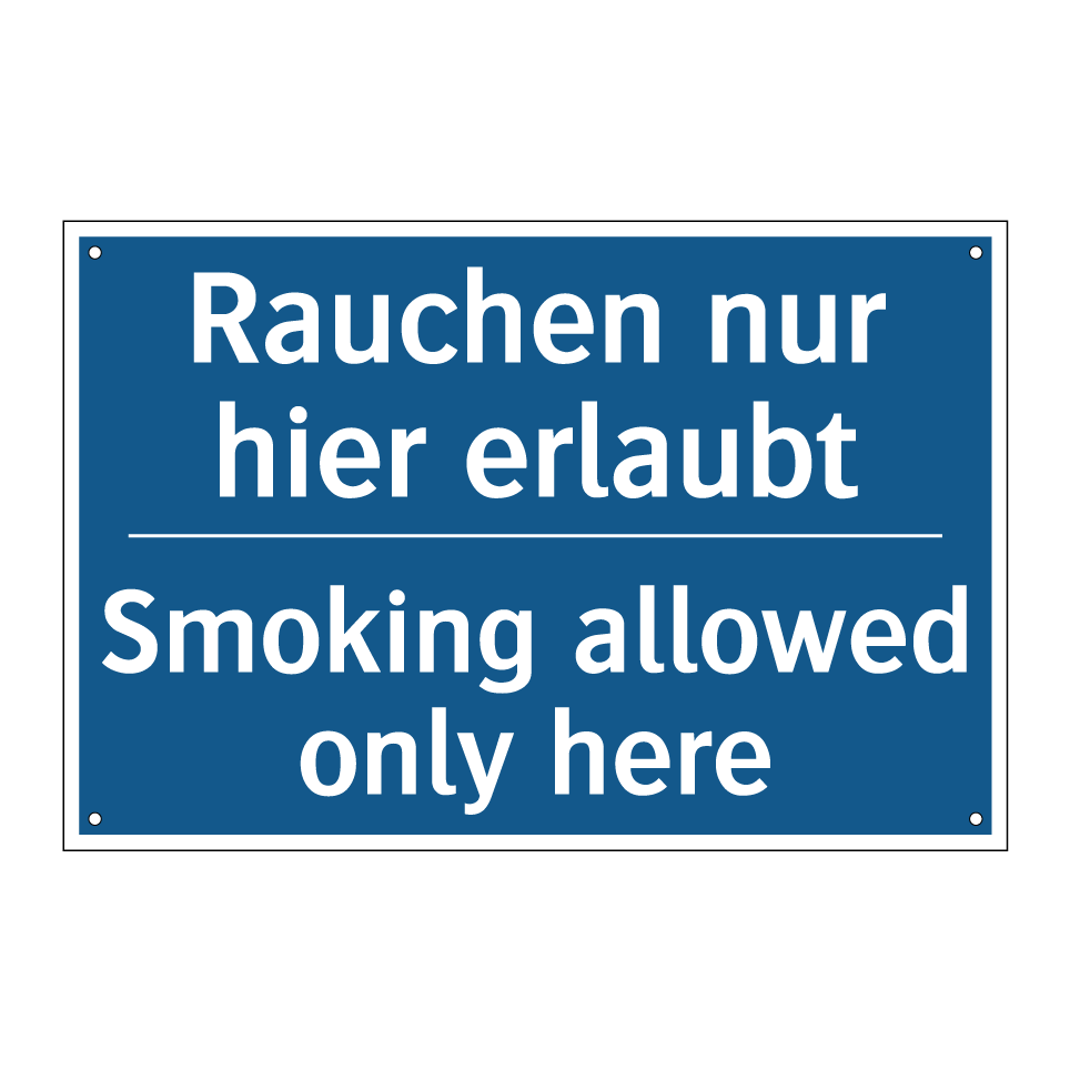 Zweisprachiges Verbotsschild mit deutschem Text Rauchen nur hier erlaubt und englischem Text Smoking allowed only here