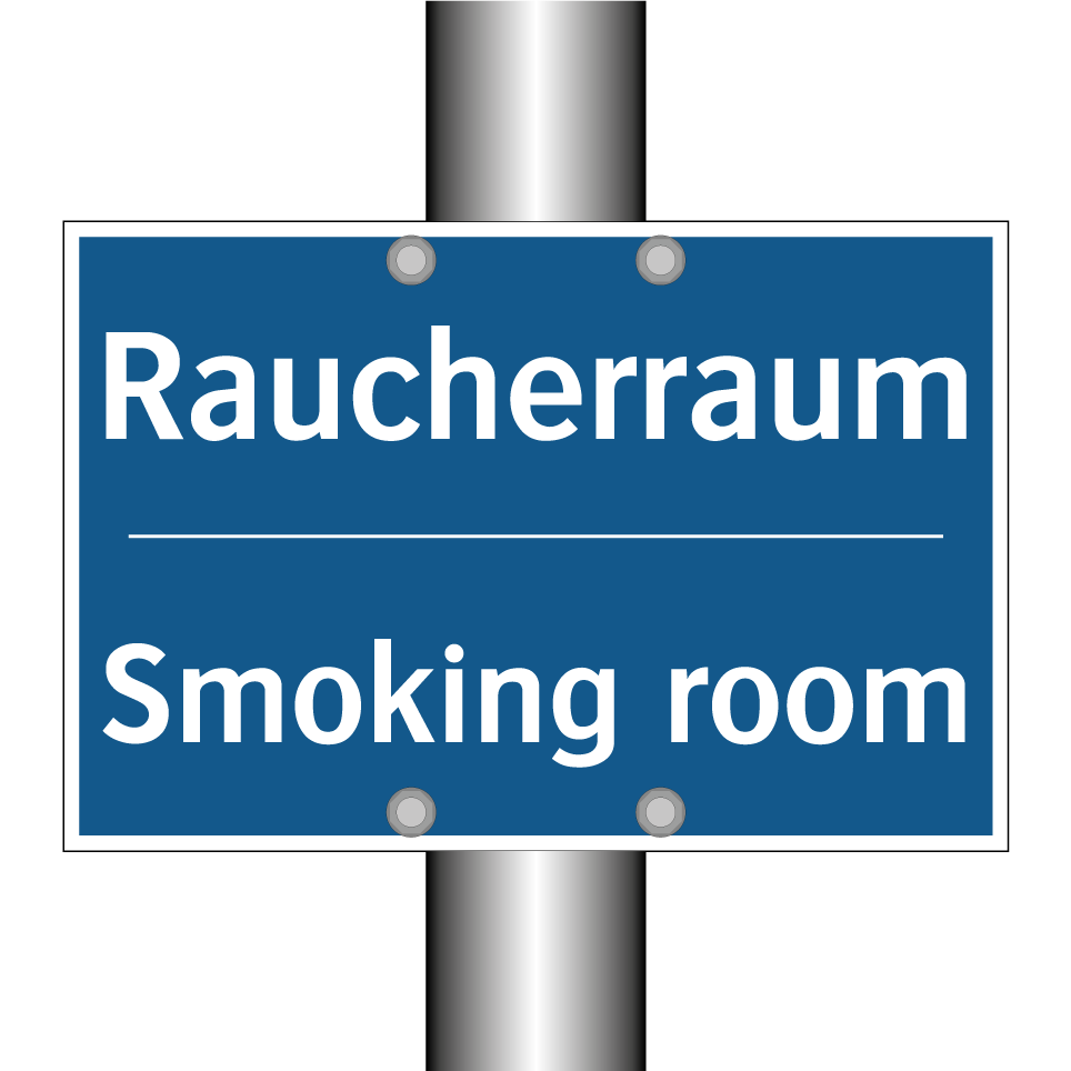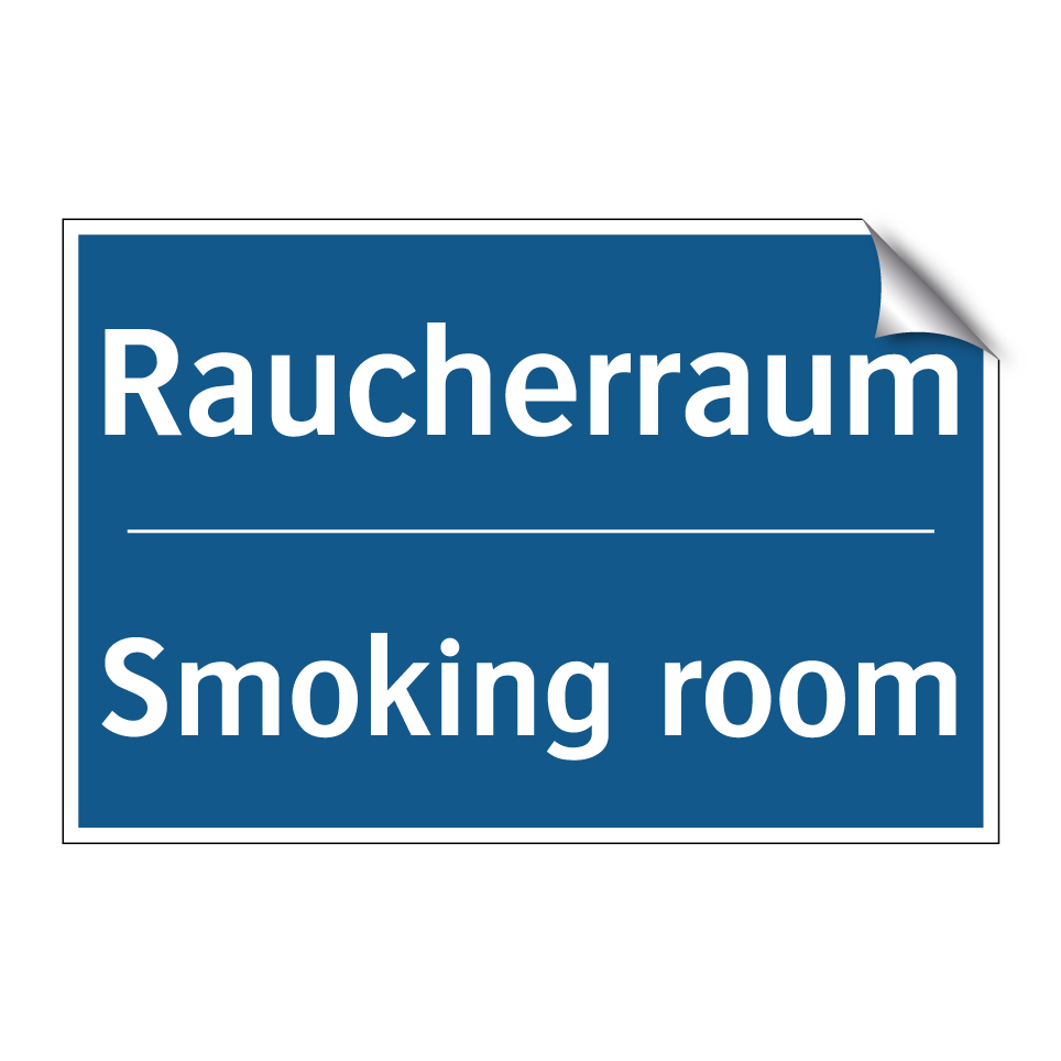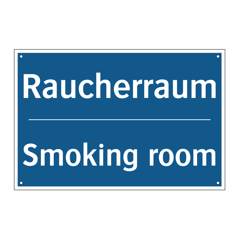 Zweisprachiges Verbotsschild mit deutschem Text Raucherraum und englischem Text Smoking room