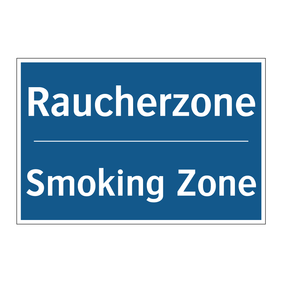 Zweisprachiges Verbotsschild mit deutschem Text Raucherzone und englischem Text Smoking Zone