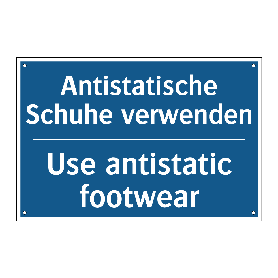 Zweisprachiges Verbotsschild mit deutschem Text Antistatische Schuhe verwenden und englischem Text Use antistatic footwear