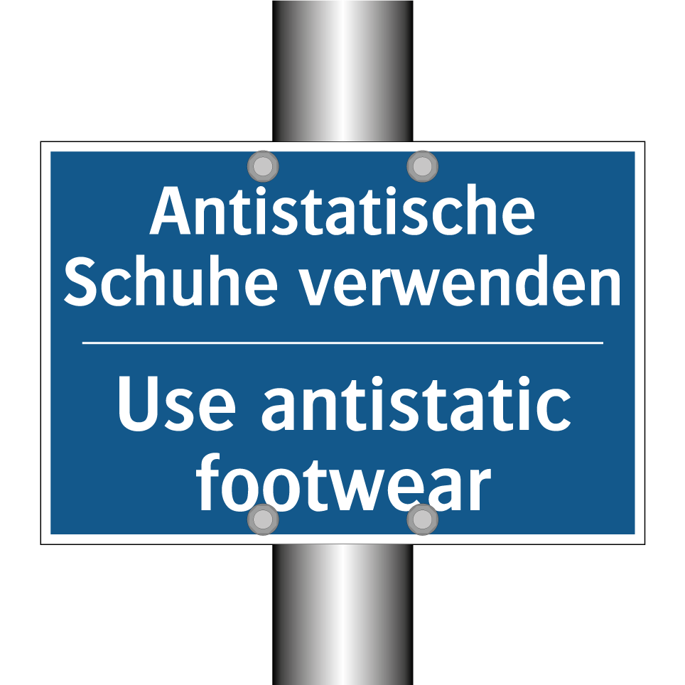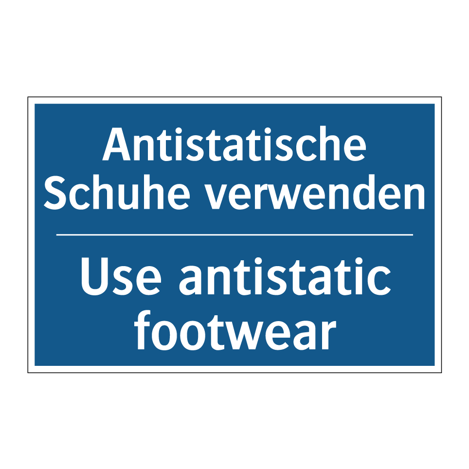 Entdecken Sie die Vielseitigkeit dieser Gebotsschild, die speziell entwickelt wurde, um die Sicherheit in Arbeitsumgebungen zu erhöhen. Diese zweisprachige Beschilderung, mit klarer Anweisung auf Deutsch und Englisch, ist ideal für internationale Arbeitsplätze, wo klare Kommunikation entscheidend ist. Die Anweisung, antistatische Schuhe zu tragen, ist besonders wichtig in Bereichen, in denen elektrostatische Entladungen vermieden werden müssen, wie in Elektronikfertigungen oder Laboren. Platzieren Sie diese Gebotsschild an Eingängen zu sensiblen Bereichen oder in Umkleideräumen, um sicherzustellen, dass alle Mitarbeiter und Besucher die erforderlichen Sicherheitsmaßnahmen einhalten. Die blaue Hintergrundfarbe und der weiße Text sorgen für eine hohe Sichtbarkeit und klare Lesbarkeit.