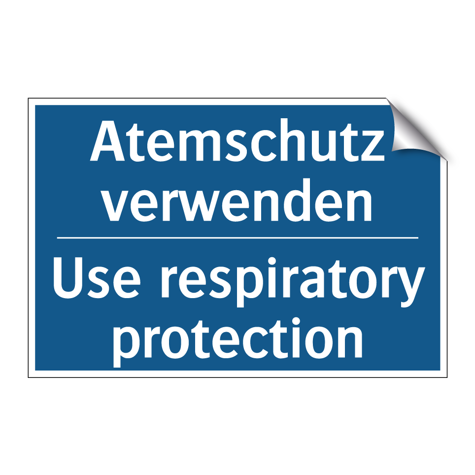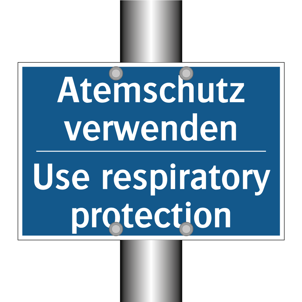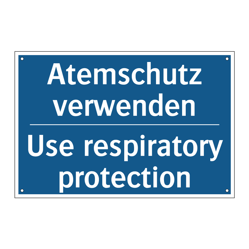Zweisprachiges Verbotsschild mit deutschem Text Atemschutz verwenden und englischem Text Use respiratory protection