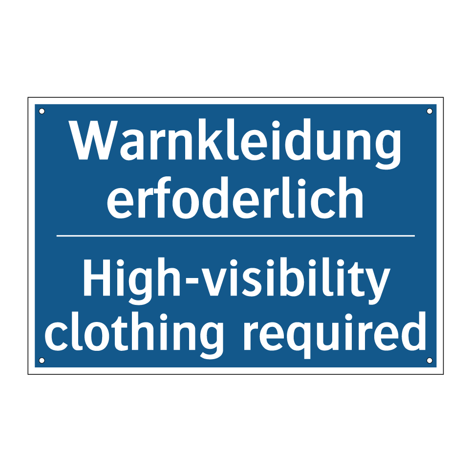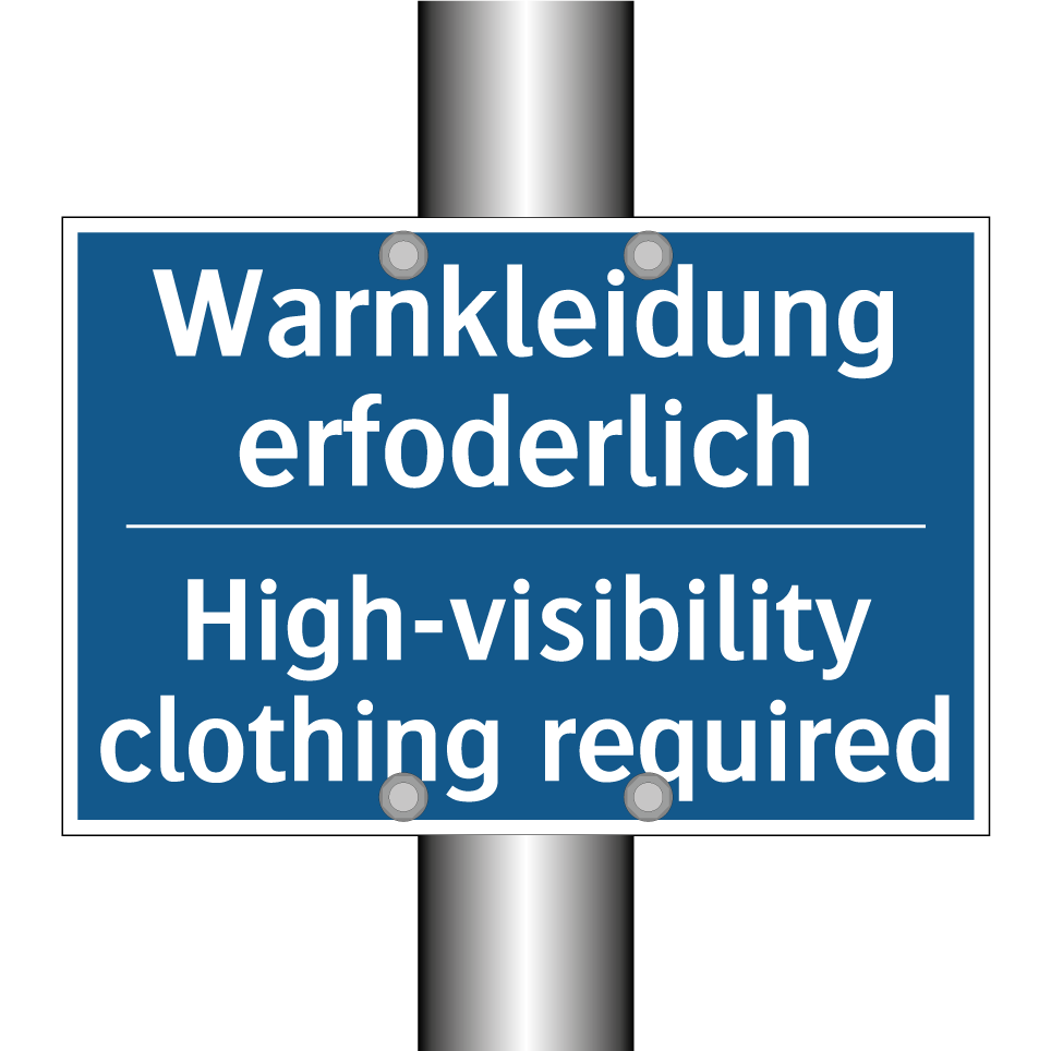 Zweisprachiges Verbotsschild mit deutschem Text Warnkleidung erfoderlich und englischem Text High-visibility clothing required