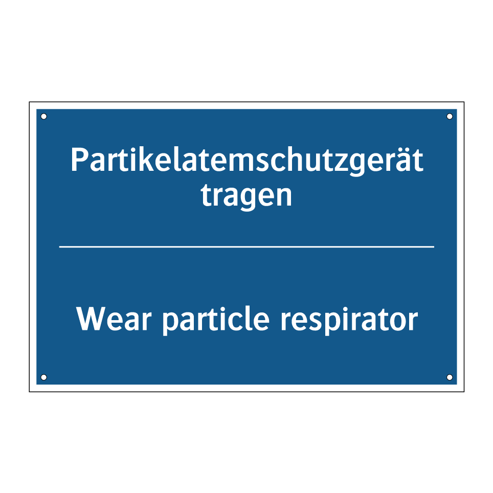 Zweisprachiges Verbotsschild mit deutschem Text Partikelatemschutzgerät tragen und englischem Text Wear particle respirator