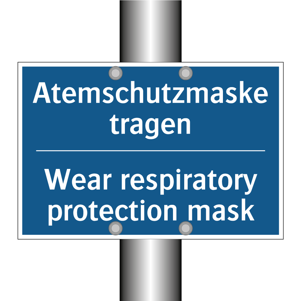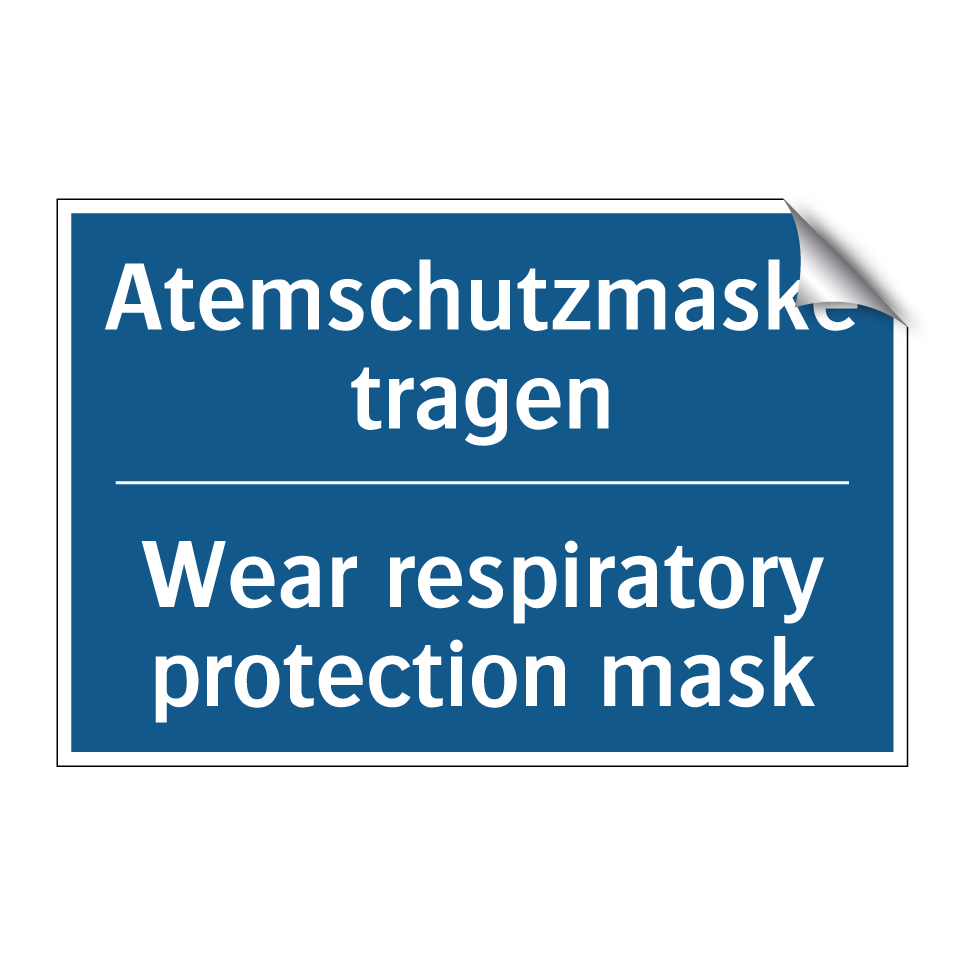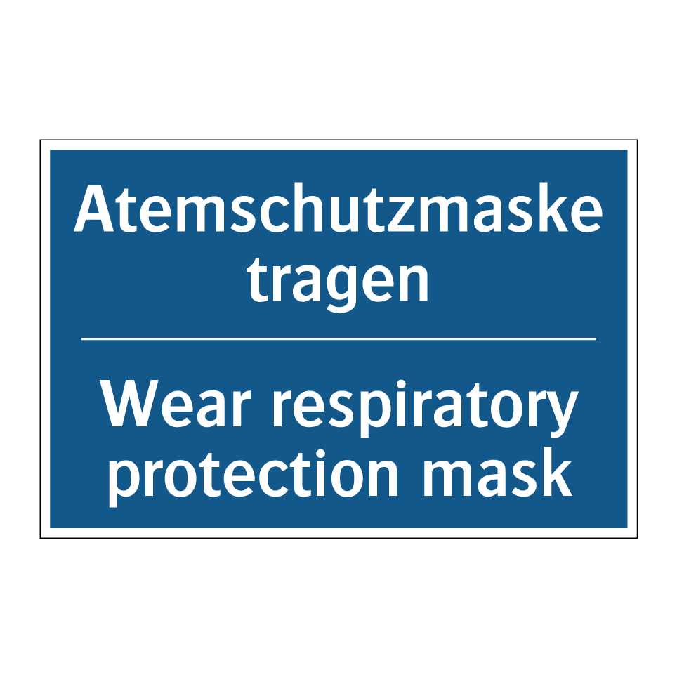 Zweisprachiges Verbotsschild mit deutschem Text Atemschutzmaske tragen und englischem Text Wear respiratory protection mask