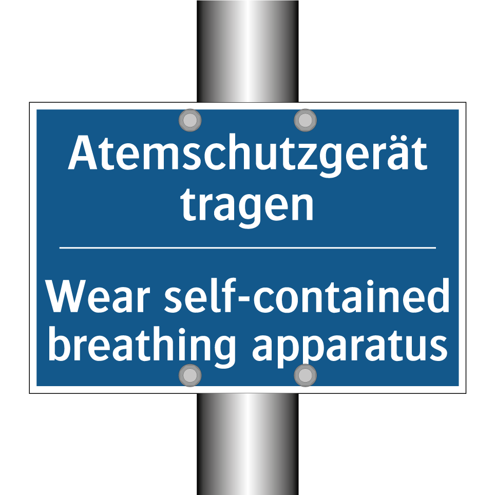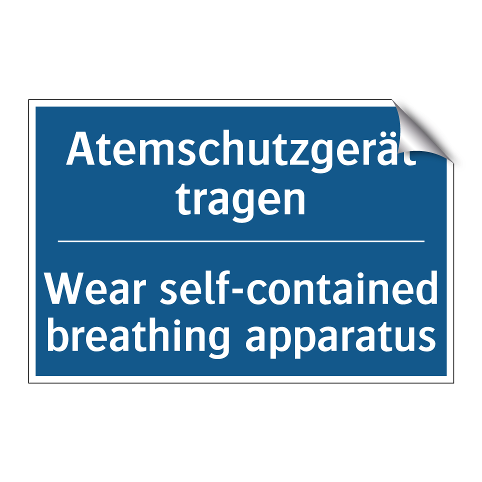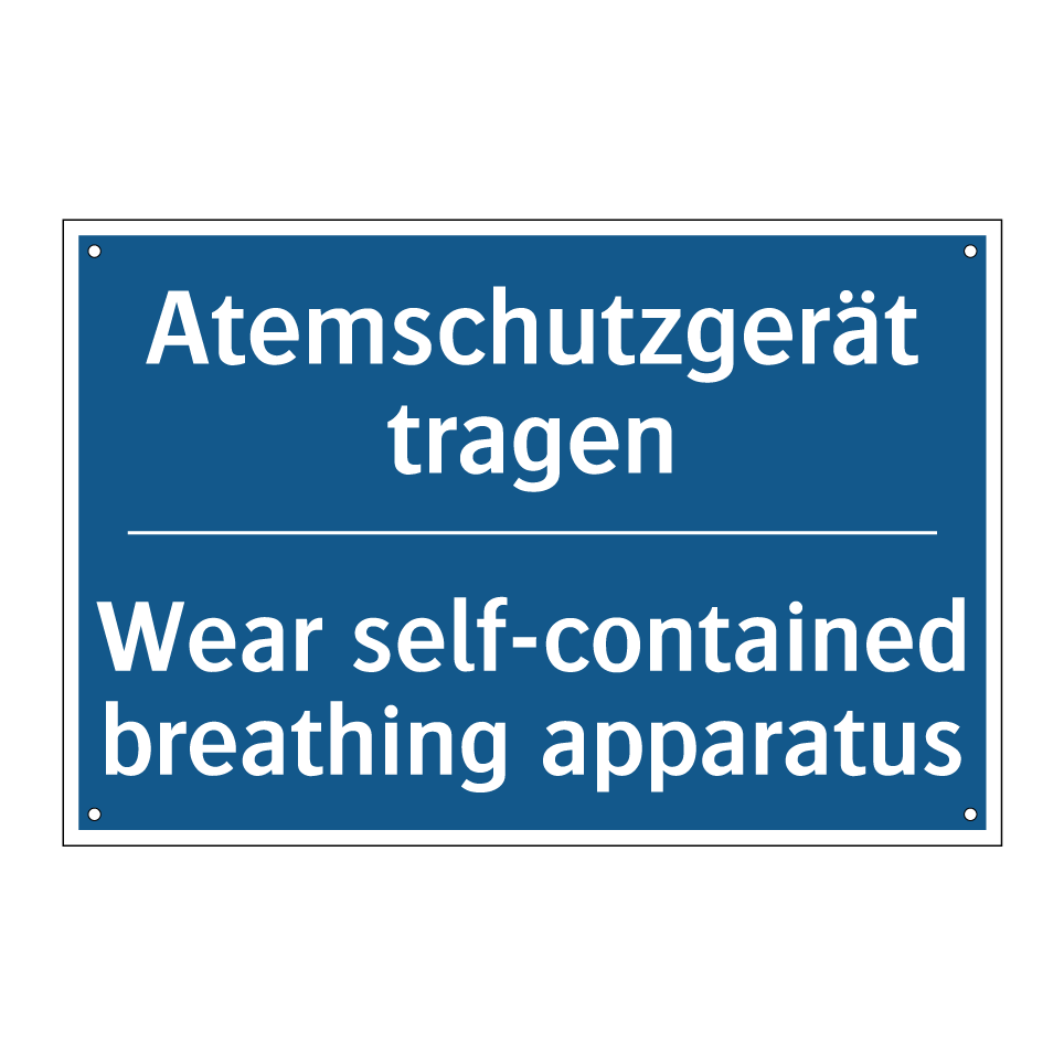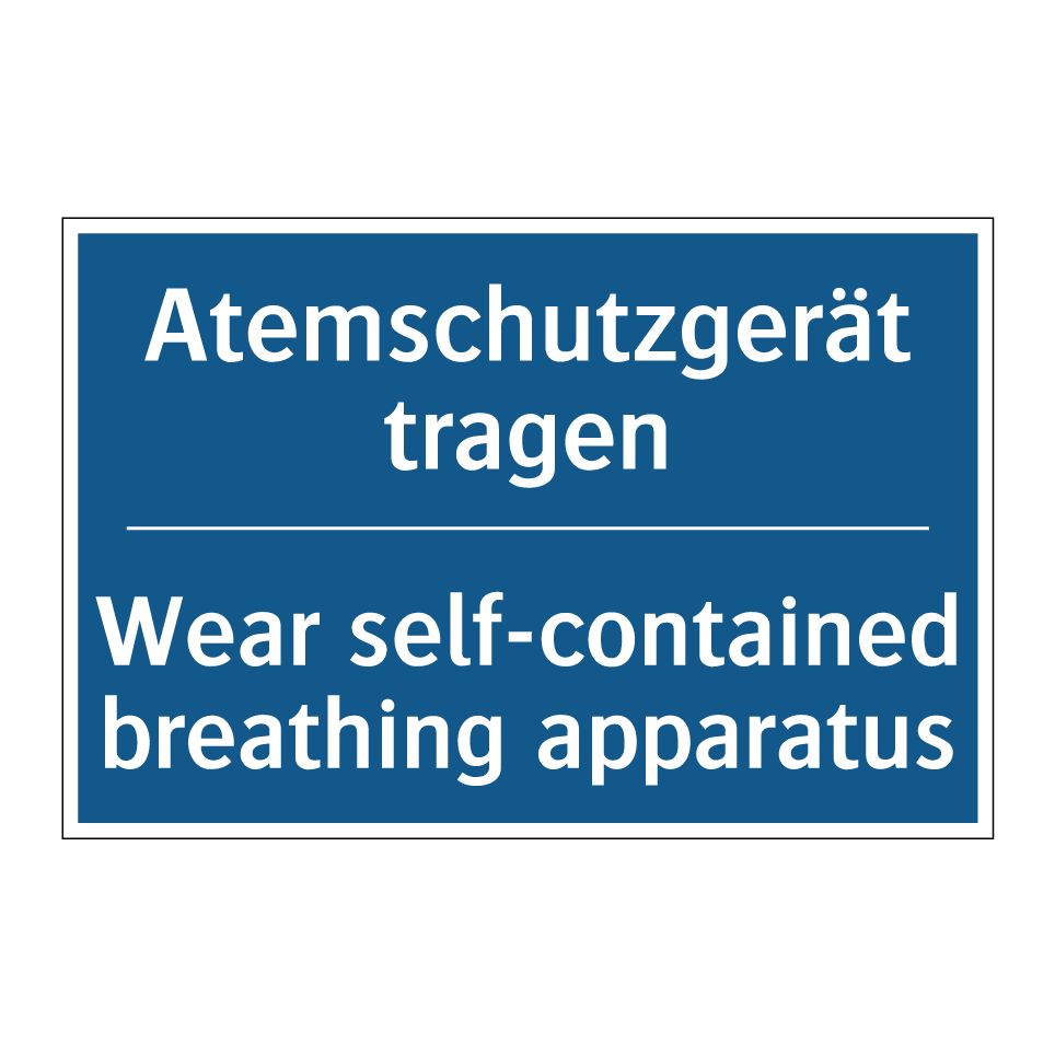 Zweisprachiges Verbotsschild mit deutschem Text Atemschutzgerät tragen und englischem Text Wear self-contained breathing apparatus