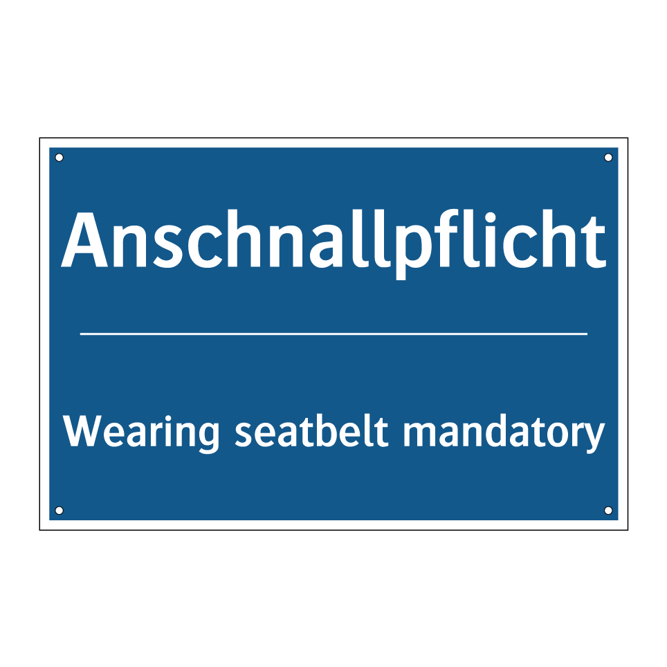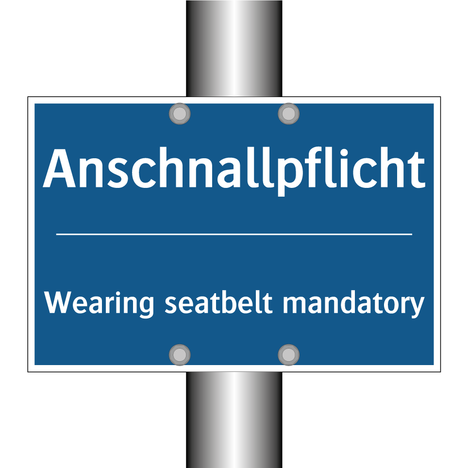 Zweisprachiges Verbotsschild mit deutschem Text Anschnallpflicht und englischem Text Wearing seatbelt mandatory