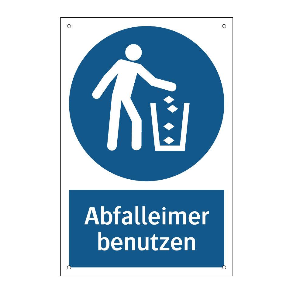 Gebotsschild mit dem Text Abfalleimer benutzen