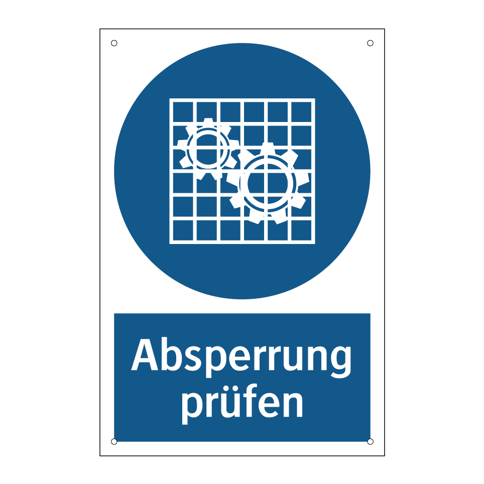 Gebotsschild mit dem Text Absperrung prüfen