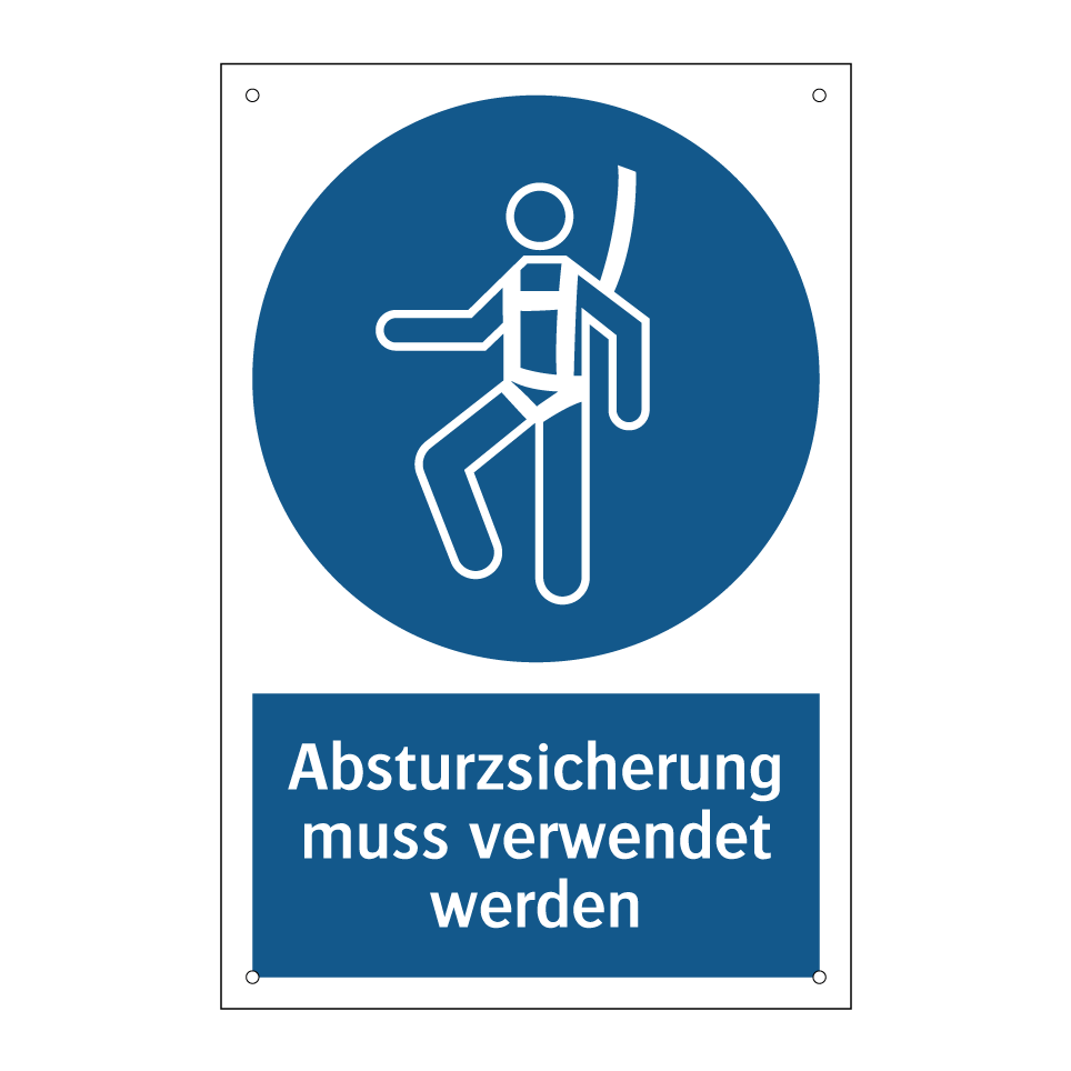 Gebotsschild mit dem Text Absturzsicherung muss verwendet werden
