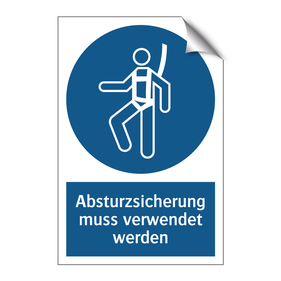 Diese Gebotsschild ist ein unverzichtbares Element für die Sicherheit am Arbeitsplatz. Sie weist darauf hin, dass eine Absturzsicherung zwingend erforderlich ist, um Unfälle zu vermeiden. Ideal für Baustellen, Lagerhäuser oder andere Arbeitsumgebungen, in denen Höhenarbeit stattfindet. Die klare blaue Hintergrundfarbe und die weiße Schrift sorgen dafür, dass die Botschaft sofort ins Auge fällt. Platzieren Sie diese Gebotsschild an Eingängen zu gefährlichen Bereichen, in der Nähe von Leitern oder Gerüsten, um sicherzustellen, dass alle Mitarbeiter und Besucher auf die Notwendigkeit der Sicherheitsausrüstung aufmerksam gemacht werden. Ein Muss für jede Umgebung, in der Arbeitssicherheit oberste Priorität hat.