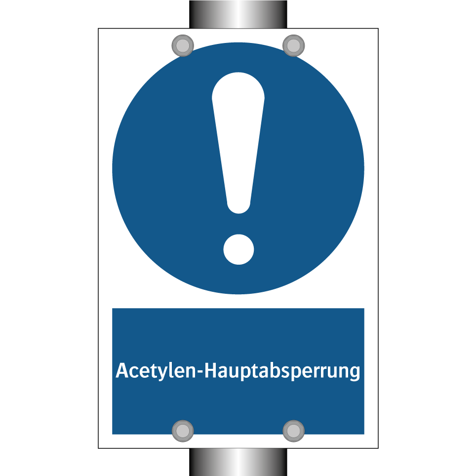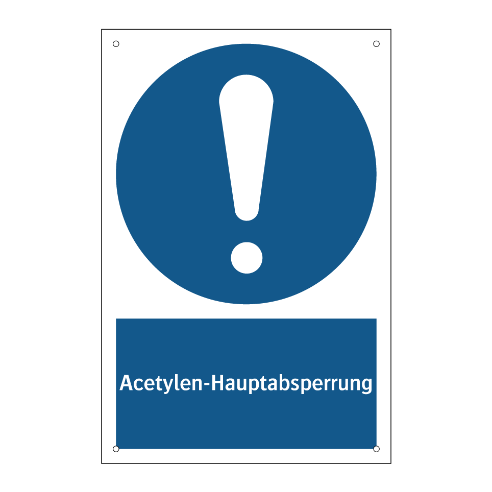Gebotsschild mit dem Text Acetylen-Hauptabsperrung