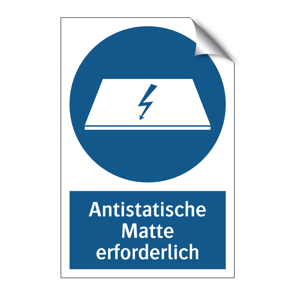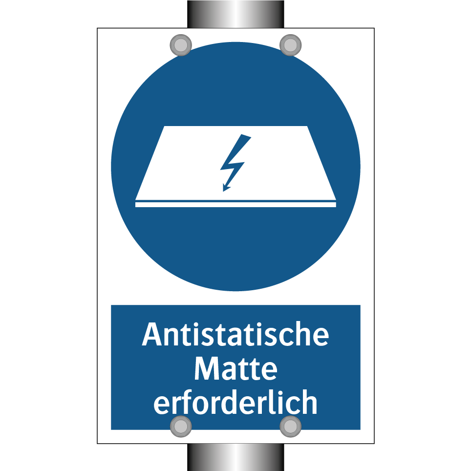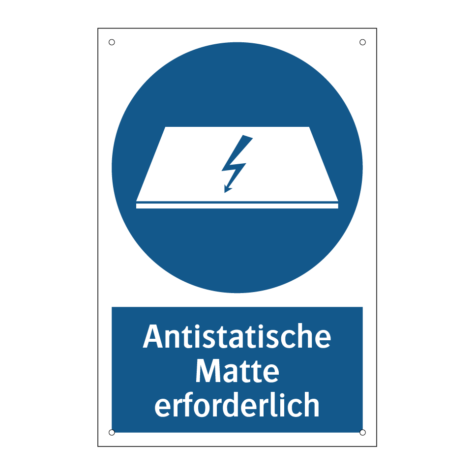 Gebotsschild mit dem Text Antistatische Matte erforderlich