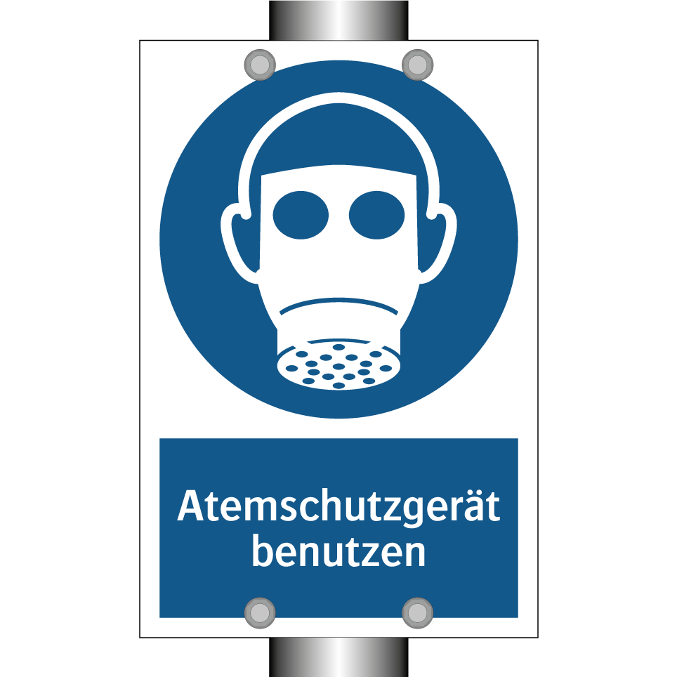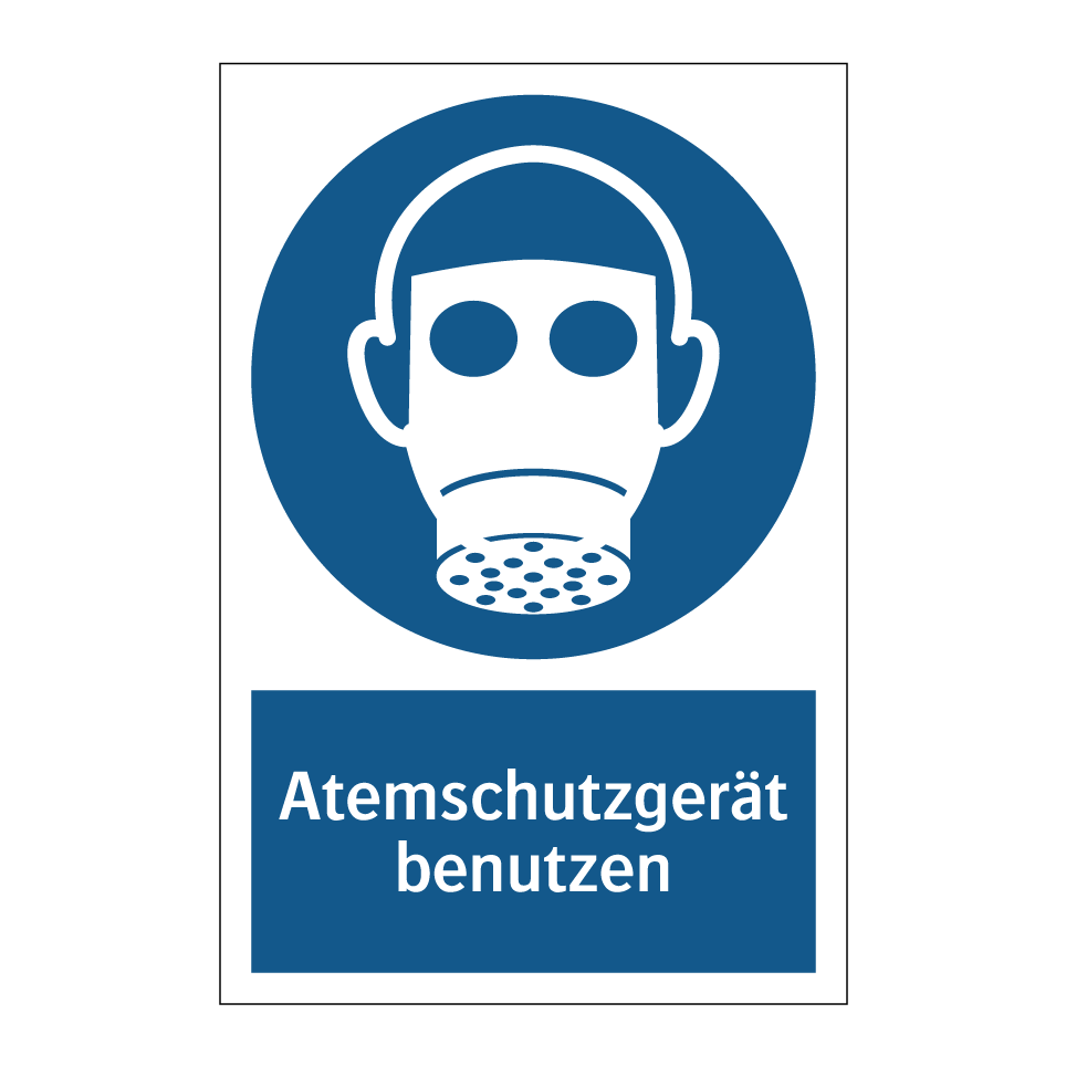 Gebotsschild mit dem Text Atemschutzgerät benutzen