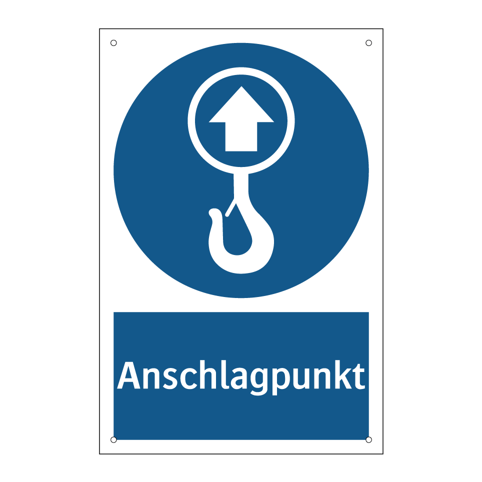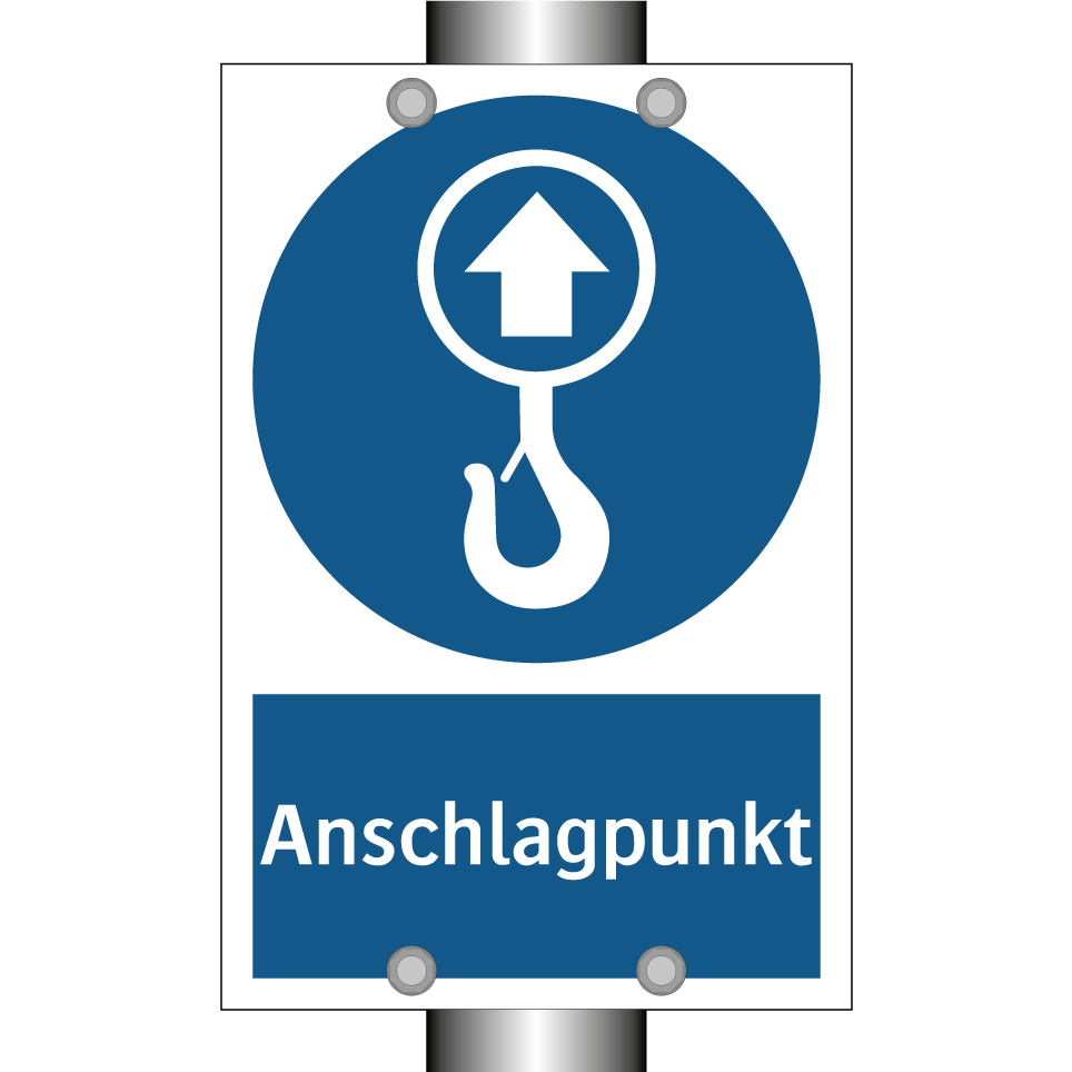 Gebotsschild mit dem Text Anschlagpunkt