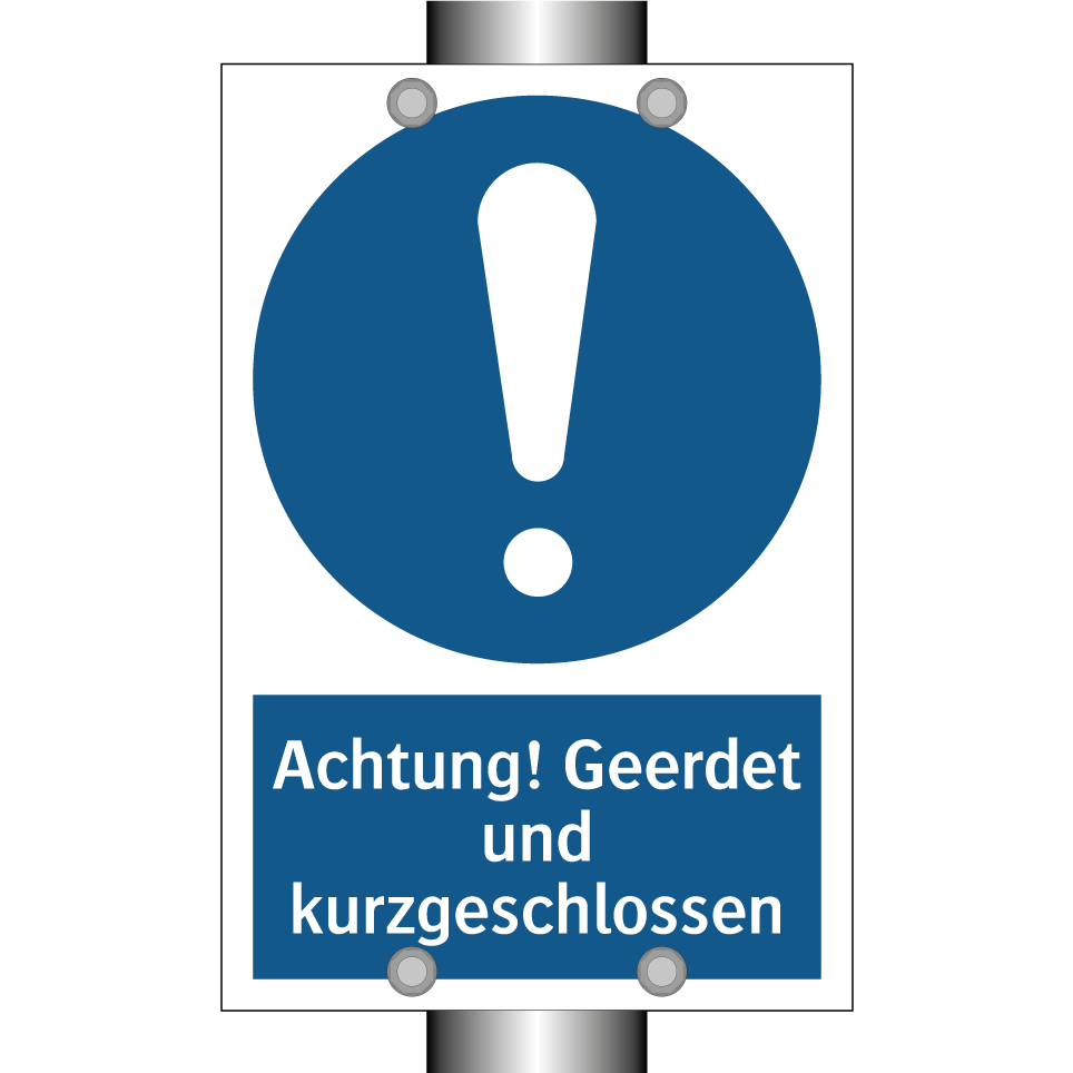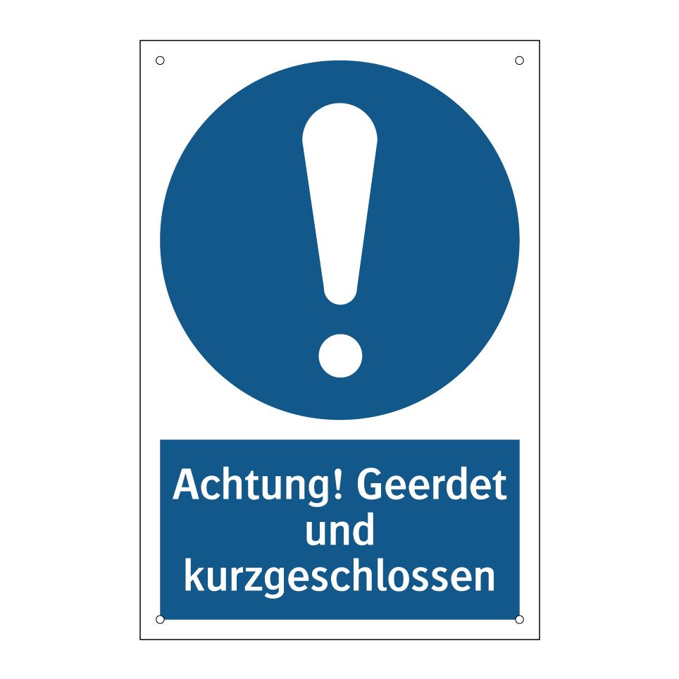 Gebotsschild mit dem Text Achtung! Geerdet und kurzgeschlossen