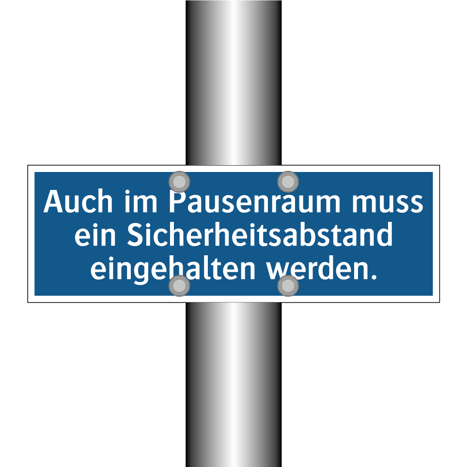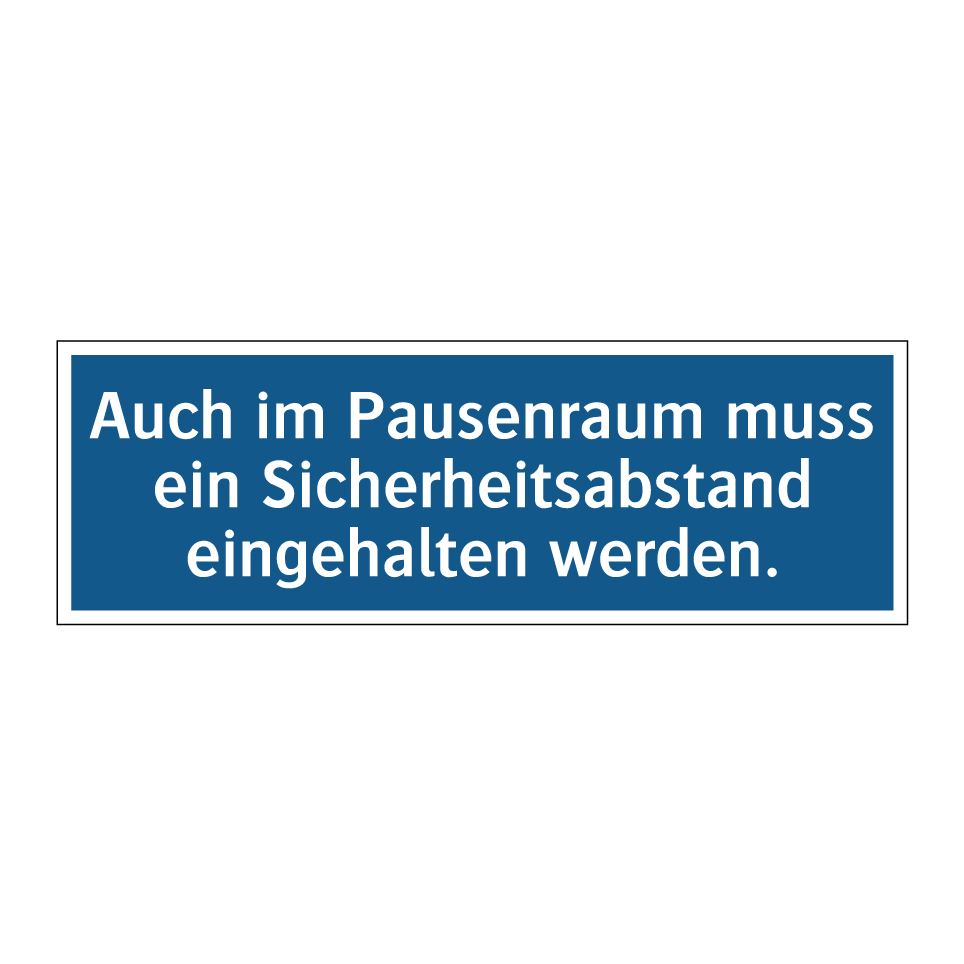 Gebotsschild mit dem Text Auch im Pausenraum muss ein Sicherheitsabstand eingehalten werden.