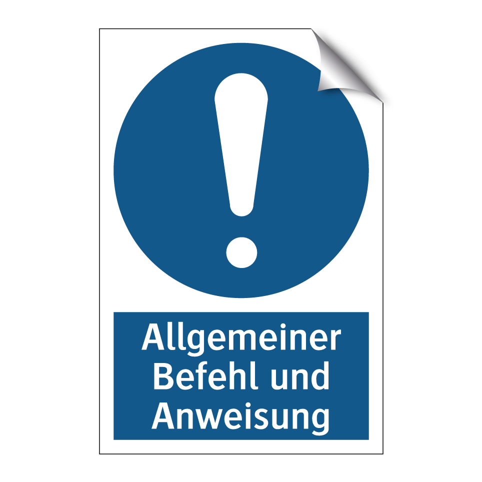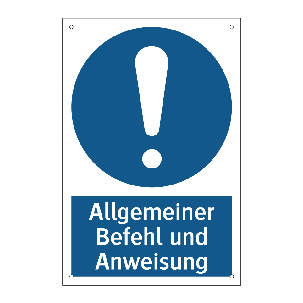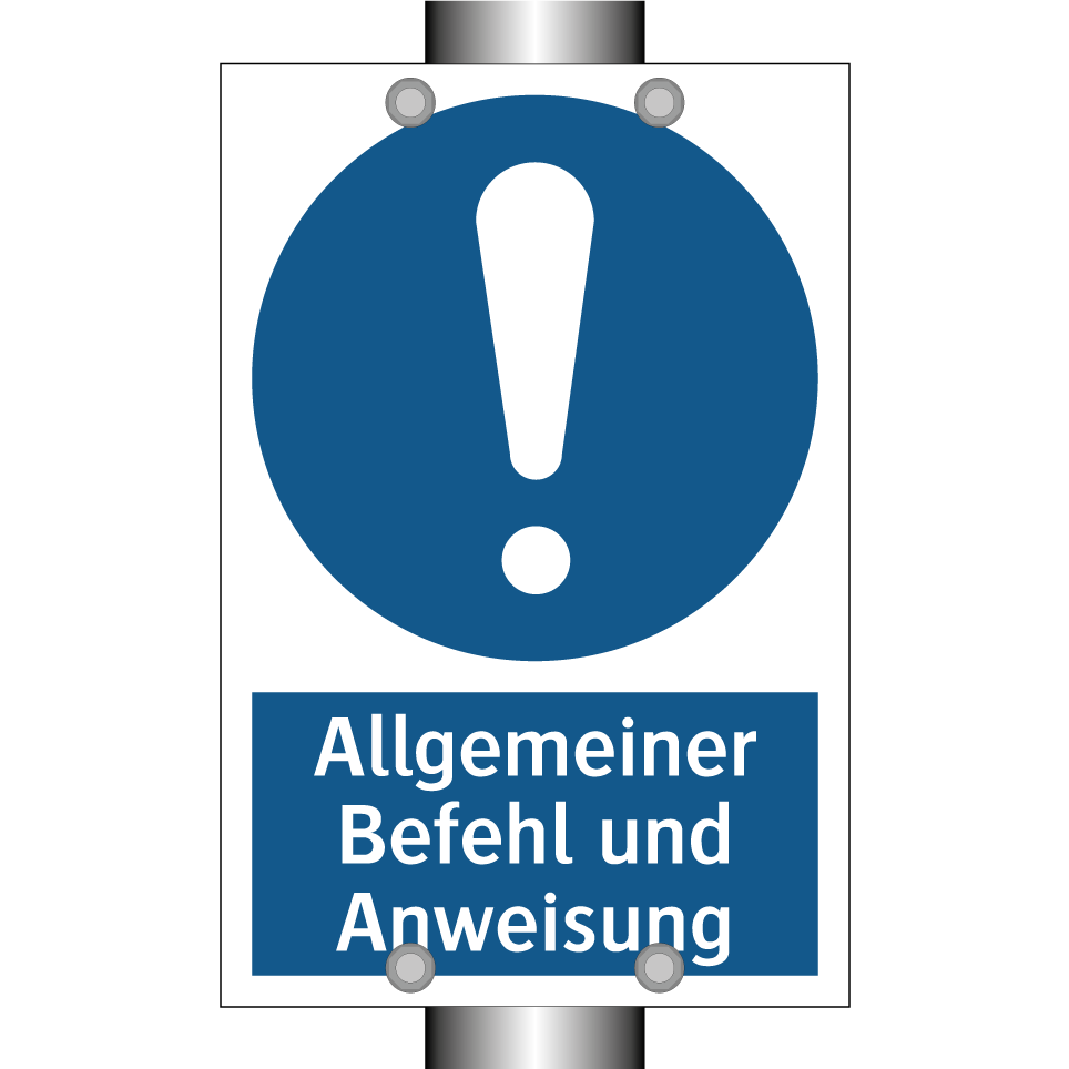 Gebotsschild mit dem Text Allgemeiner Befehl und Anweisung