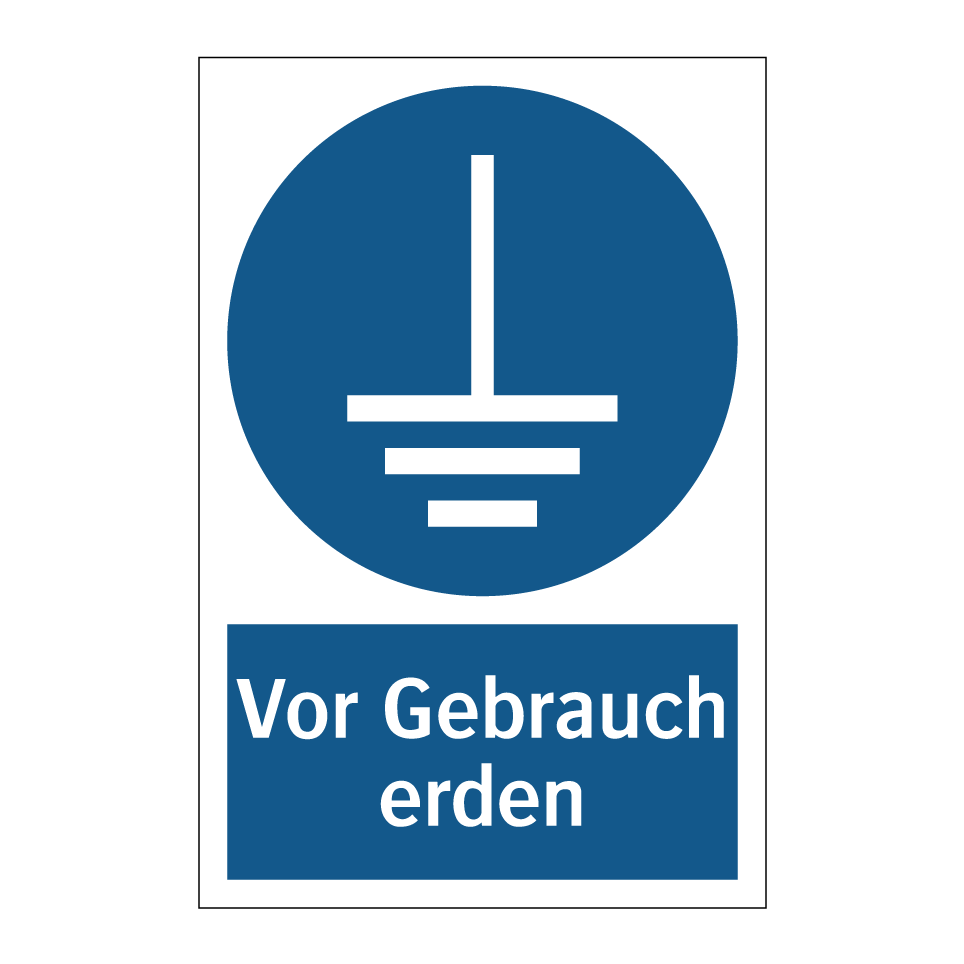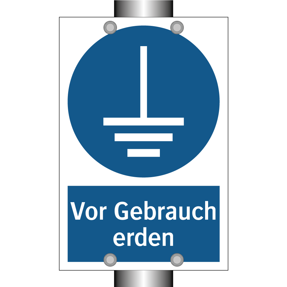 Gebotsschild mit dem Text Vor Gebrauch erden