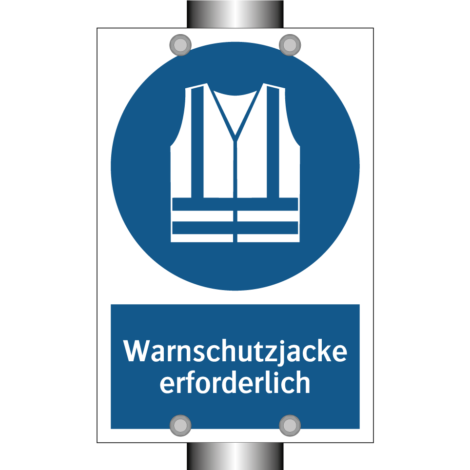Gebotsschild mit dem Text Warnschutzjacke erforderlich