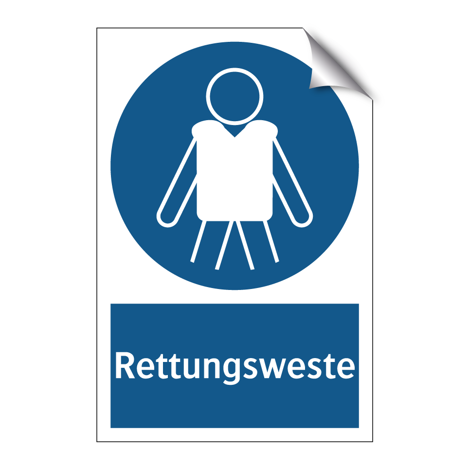 Gebotsschild mit dem Text Rettungsweste