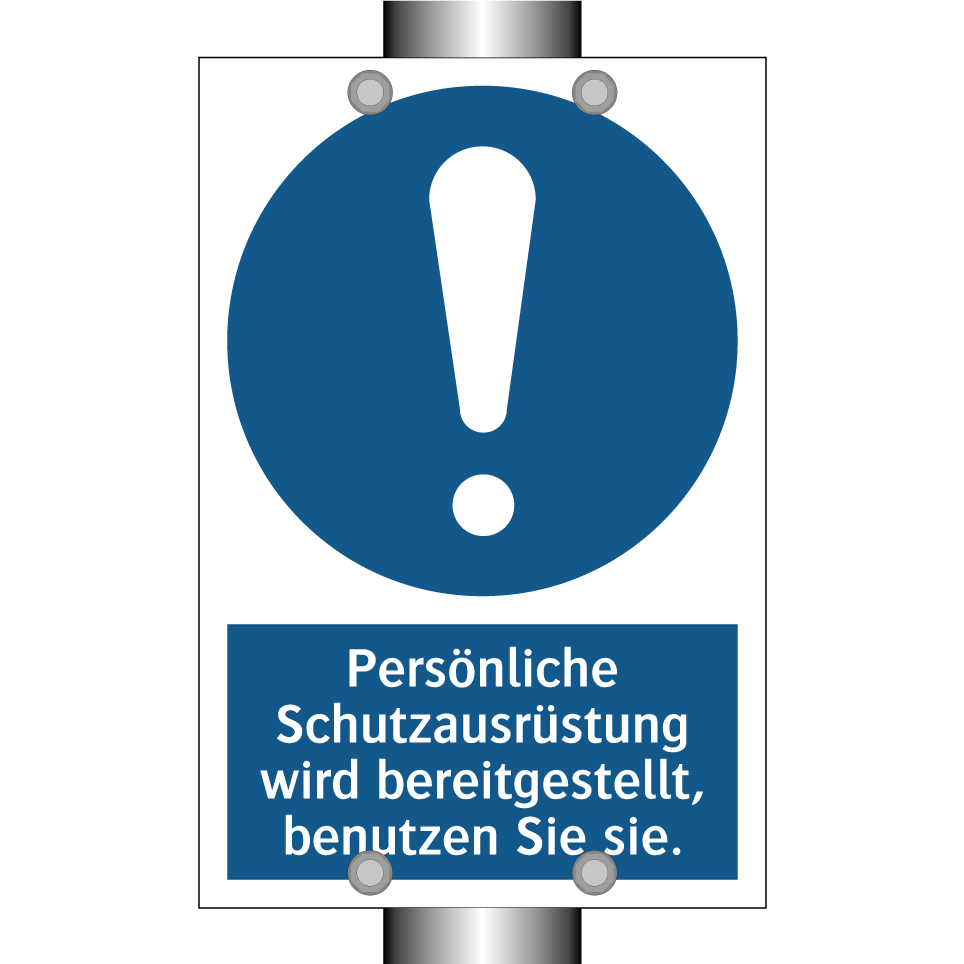 Diese Gebotsschild ist ein unverzichtbares Element für die Sicherheit am Arbeitsplatz. Mit ihrer klaren blauen Hintergrundfarbe und der auffälligen weißen Schrift fordert sie zur Nutzung der bereitgestellten persönlichen Schutzausrüstung auf. Ideal für den Einsatz in industriellen Umgebungen, Baustellen oder Werkstätten, erinnert sie Mitarbeiter daran, ihre Sicherheit ernst zu nehmen. Platzieren Sie diese Gebotsschild an Eingängen, in Umkleideräumen oder in der Nähe von Arbeitsbereichen, um sicherzustellen, dass die Sicherheitsvorschriften eingehalten werden. Diese visuelle Erinnerung trägt dazu bei, Unfälle zu vermeiden und die Gesundheit der Mitarbeiter zu schützen.