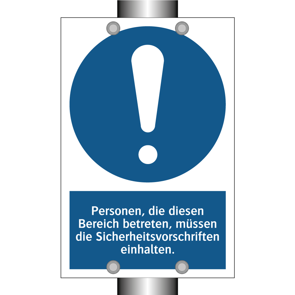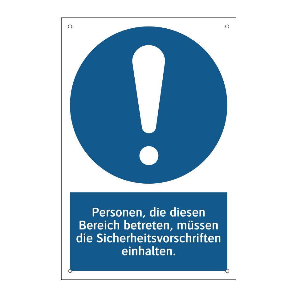 Gebotsschild mit dem Text Personen, die diesen Bereich betreten, müssen die Sicherheitsvorschriften einhalten.