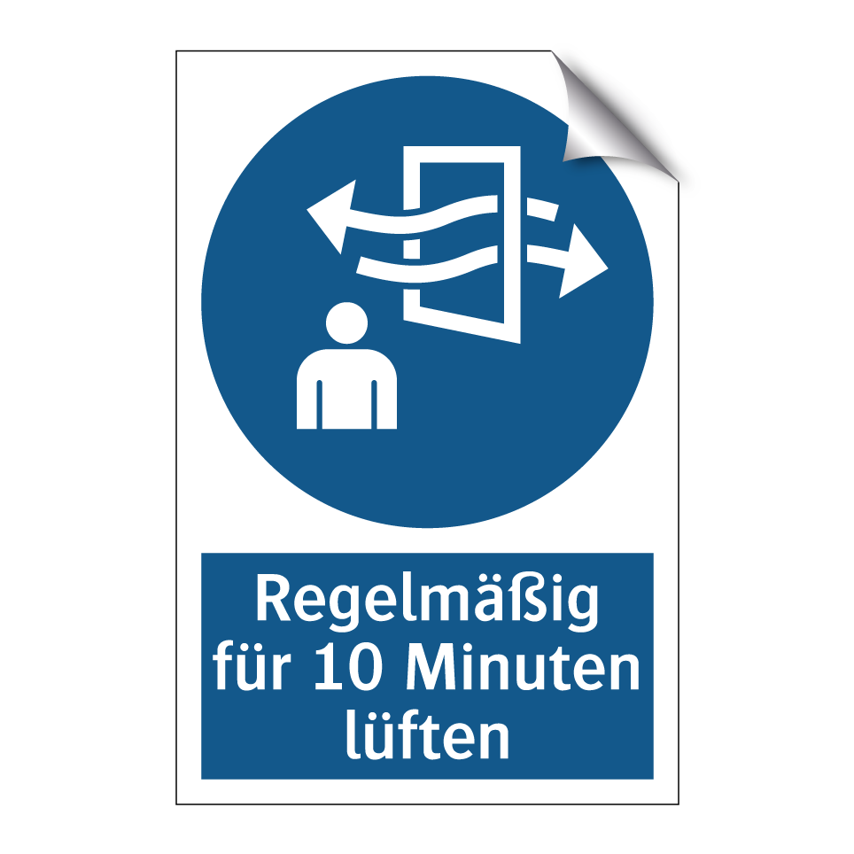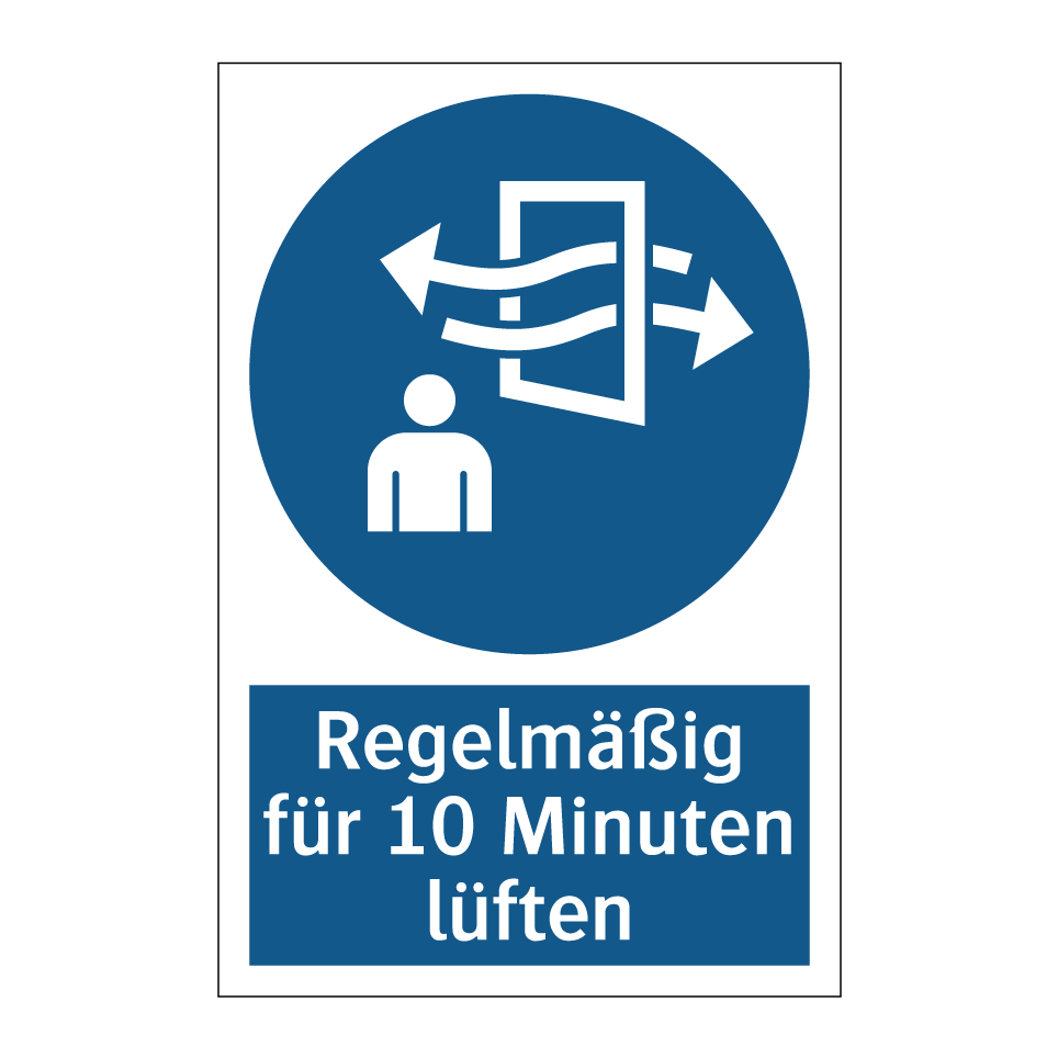 Gebotsschild mit dem Text Regelmäßig für 10 Minuten lüften