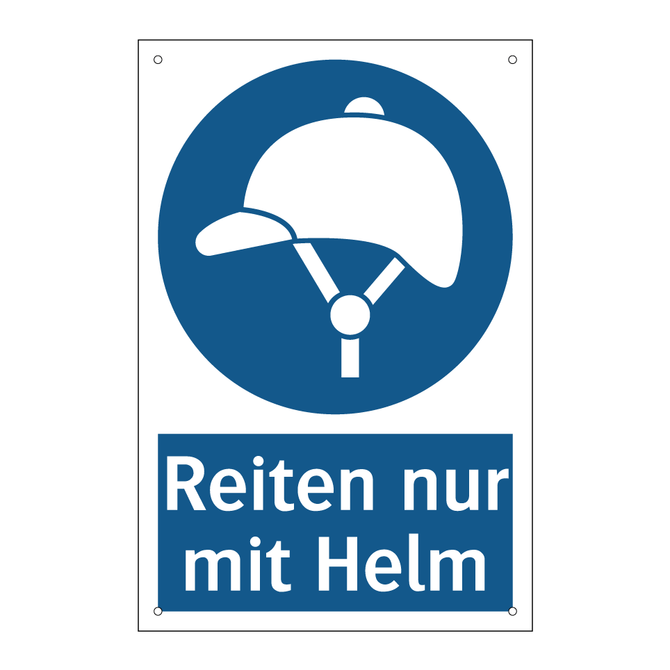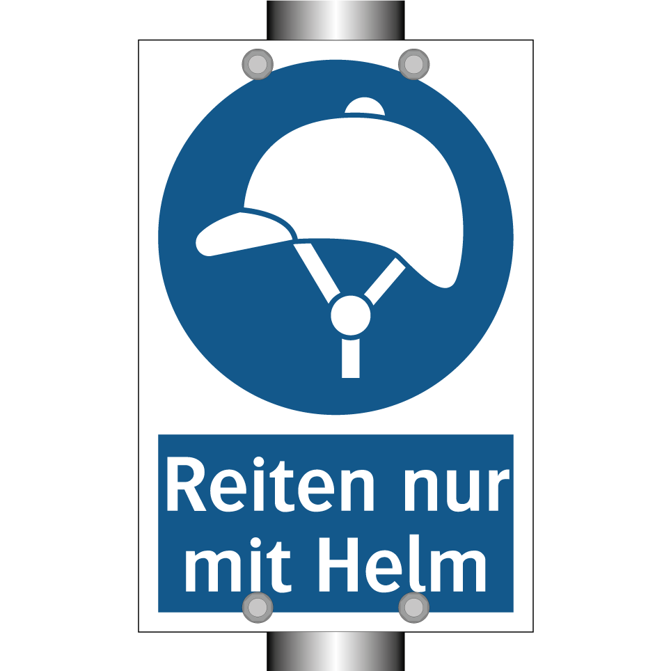 Gebotsschild mit dem Text Reiten nur mit Helm