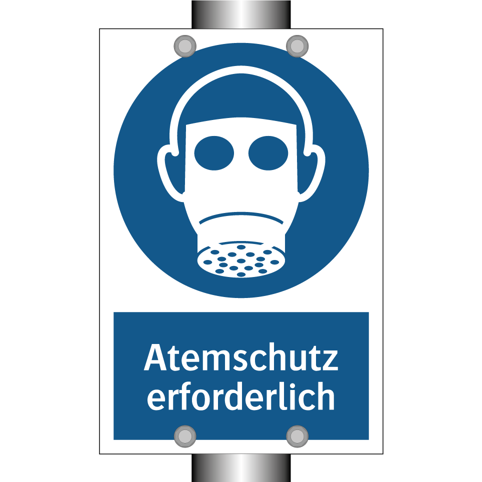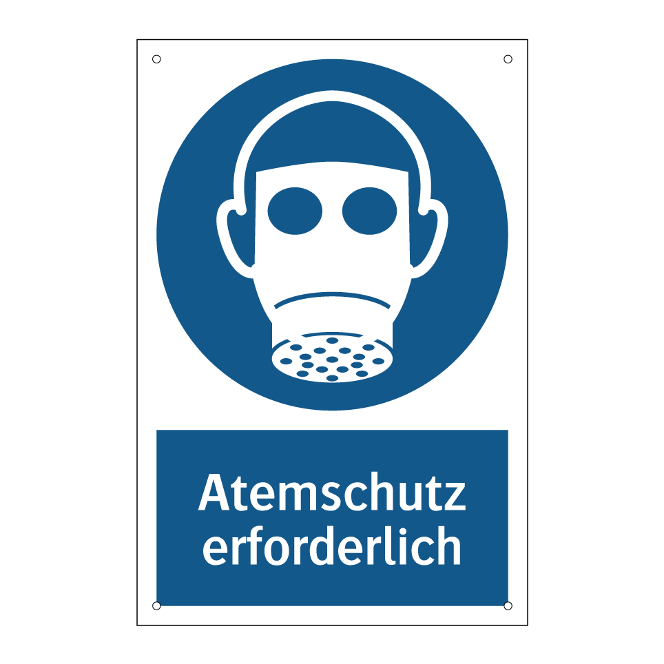 Gebotsschild mit dem Text Atemschutz erforderlich