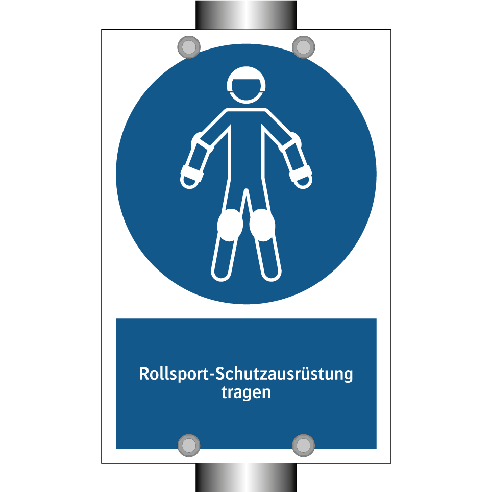 Gebotsschild mit dem Text Rollsport-Schutzausrüstung tragen
