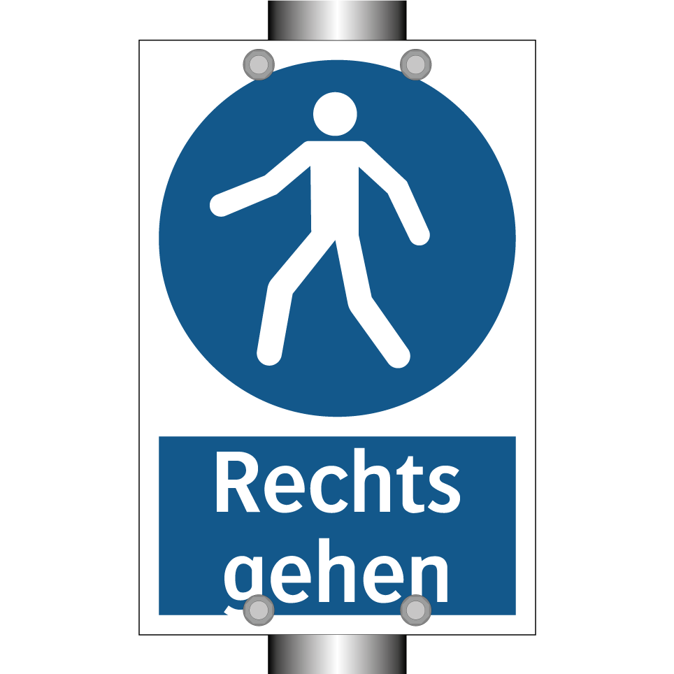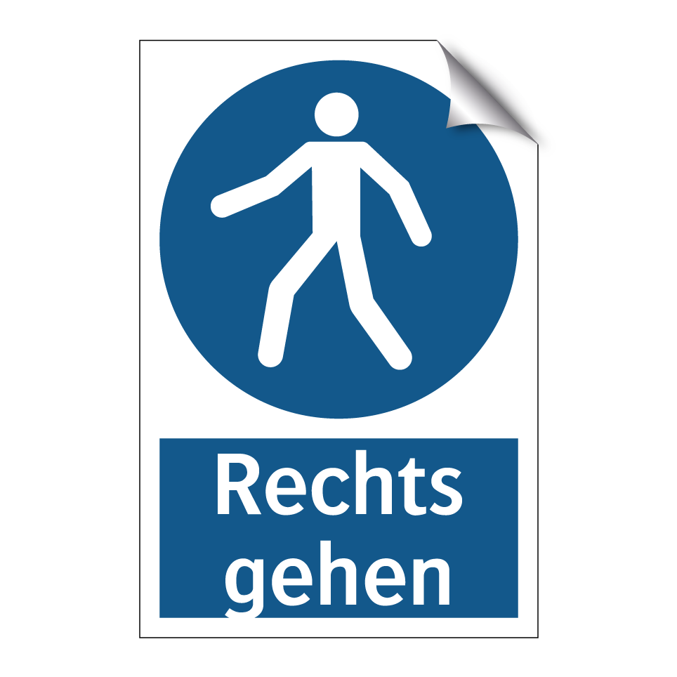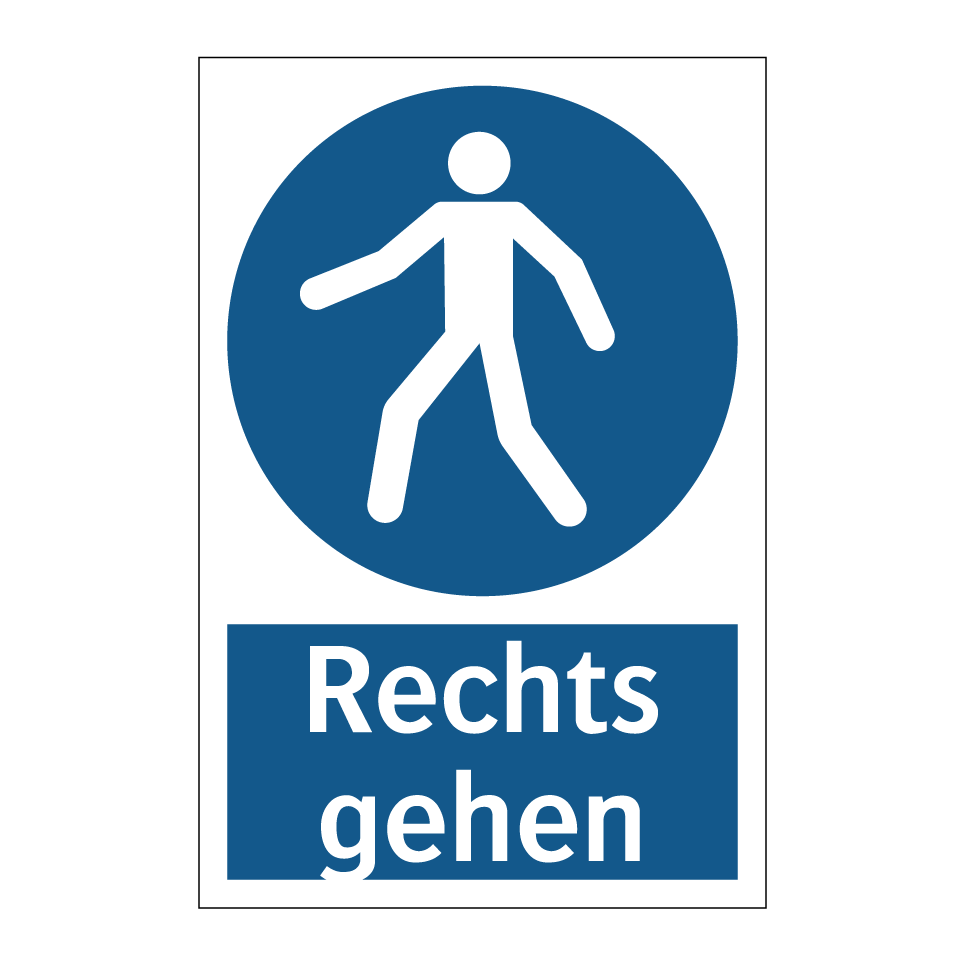 Diese Gebotsschild mit blauem Hintergrund und weißer Schrift ist ideal, um klare Anweisungen in öffentlichen und privaten Bereichen zu geben. Sie fordert dazu auf, den rechten Weg zu nehmen und sorgt so für einen reibungslosen und sicheren Personenfluss. Besonders geeignet ist sie für Einsatzorte wie Einkaufszentren, Flughäfen, Bahnhöfe und Bürogebäude, wo eine klare Wegweisung unerlässlich ist. Die deutliche Symbolik und der prägnante Text machen sie leicht verständlich, selbst in hektischen Umgebungen. Diese Gebotsschild trägt dazu bei, Verwirrung zu vermeiden und die Sicherheit zu erhöhen, indem sie den Verkehr in die gewünschte Richtung lenkt.
