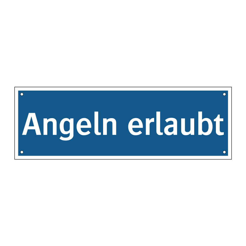 Diese Gebotsschild mit blauem Hintergrund und weißer Schrift ist ideal für Bereiche, in denen das Angeln gestattet ist. Sie dient dazu, Angler darauf hinzuweisen, dass sie in diesem Gebiet ihre Angelruten auswerfen dürfen. Perfekt geeignet für Seen, Flüsse oder private Angelteiche, sorgt dieses Schild für Klarheit und vermeidet Missverständnisse. Platzieren Sie es an gut sichtbaren Stellen wie Eingängen zu Angelplätzen oder an Uferbereichen, um sicherzustellen, dass alle Besucher die Erlaubnis zum Angeln erkennen. Diese Beschilderung ist ein unverzichtbares Element für Angelvereine und Freizeitparks, die ihren Gästen das Angeln ermöglichen möchten.