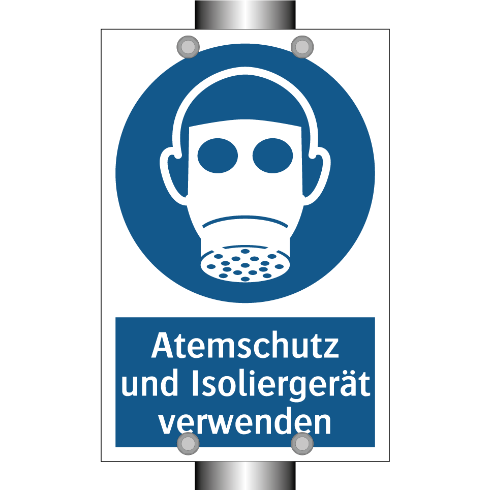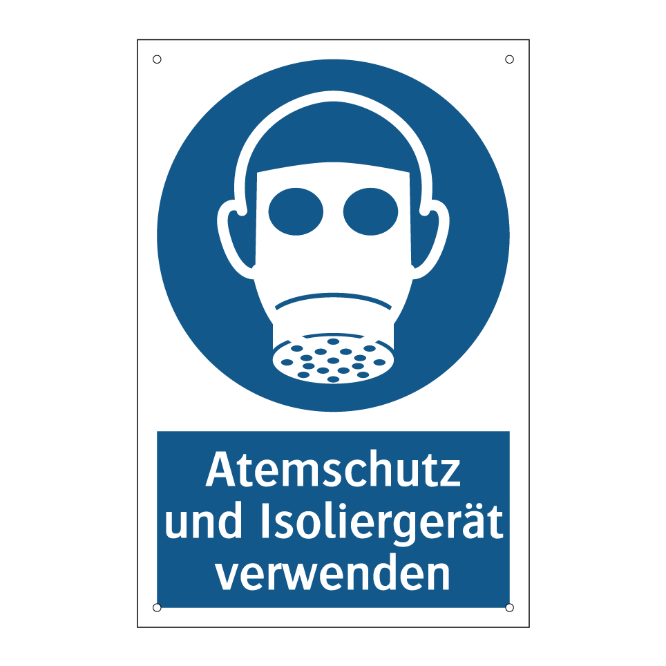 Gebotsschild mit dem Text Atemschutz und Isoliergerät verwenden
