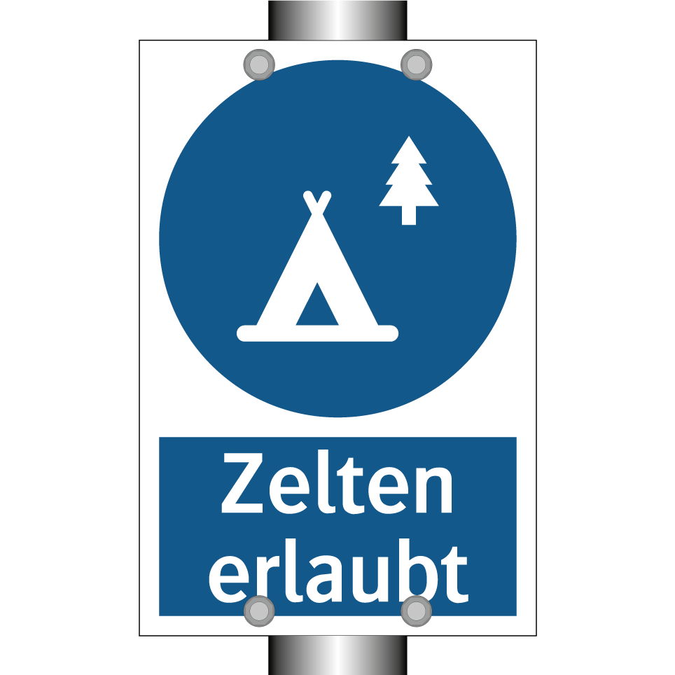 Diese Gebotsschild mit blauem Hintergrund und weißer Schrift ist ideal für Campingplätze und Erholungsgebiete. Sie signalisiert klar und deutlich, dass das Zelten an diesem Ort gestattet ist. Die auffällige Symbolik sorgt dafür, dass die Botschaft auch aus der Ferne gut erkennbar ist. Diese Beschilderung eignet sich hervorragend für öffentliche Parks, Naturreservate oder private Grundstücke, wo das Campen erlaubt ist. Durch die Verwendung dieser Gebotsschilder wird den Besuchern eine klare Orientierung geboten, was zur Sicherheit und Ordnung auf dem Gelände beiträgt. Platzieren Sie sie an Eingängen, Wegen oder anderen strategischen Punkten, um die Besucher effektiv zu informieren.