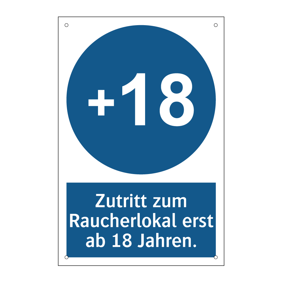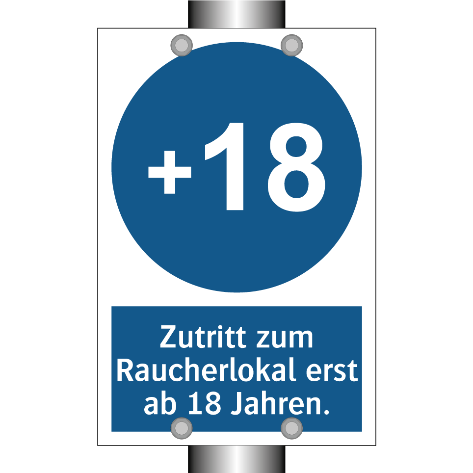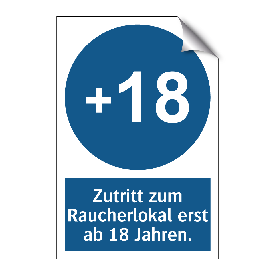 Gebotsschild mit dem Text Zutritt zum Raucherlokal erst ab 18 Jahren.