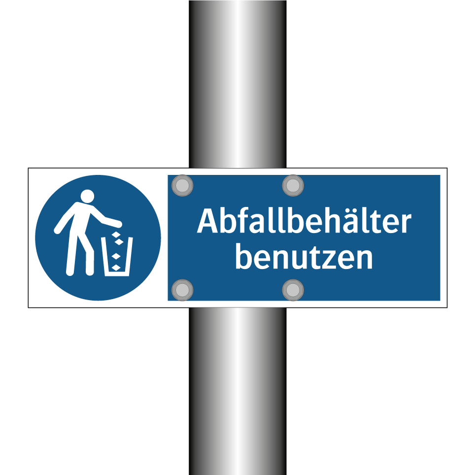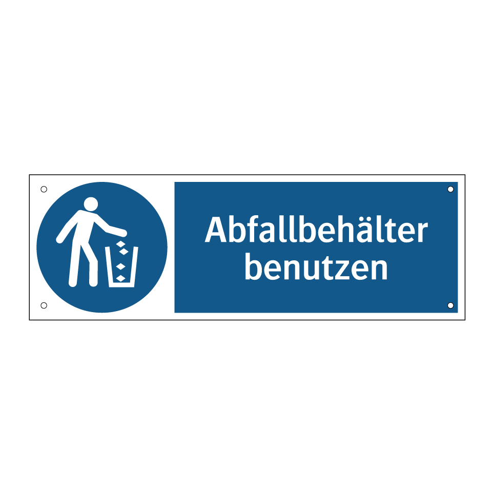 Gebotsschild mit dem Text Abfallbehälter benutzen
