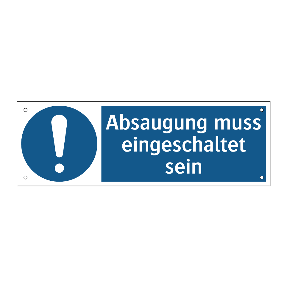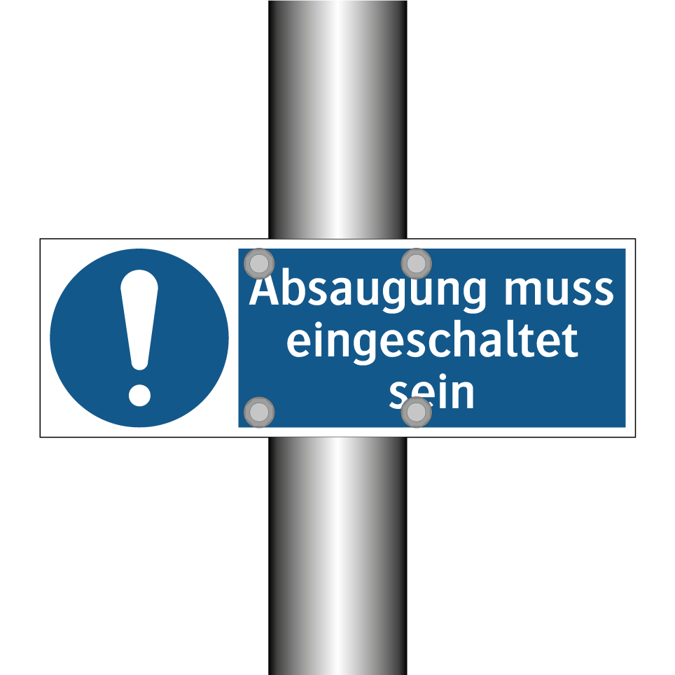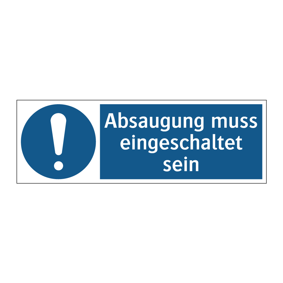 Gebotsschild mit dem Text Absaugung muss eingeschaltet sein