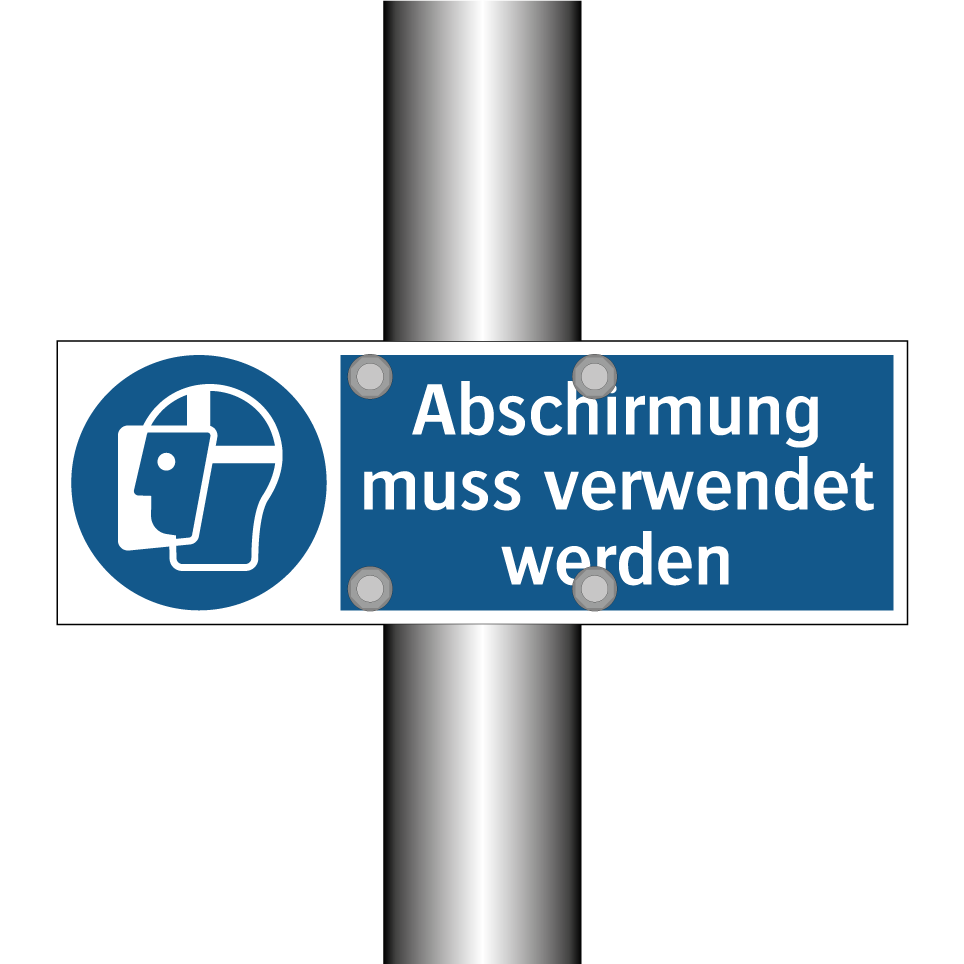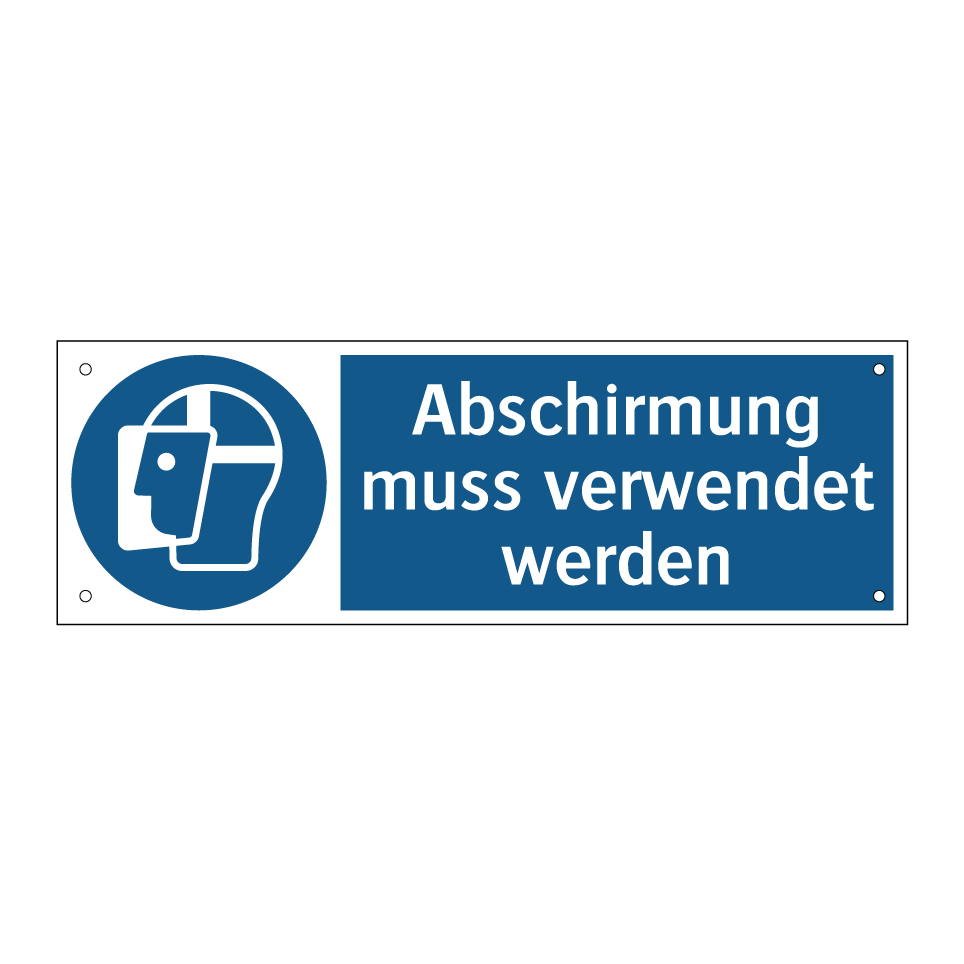 Gebotsschild mit dem Text Abschirmung muss verwendet werden