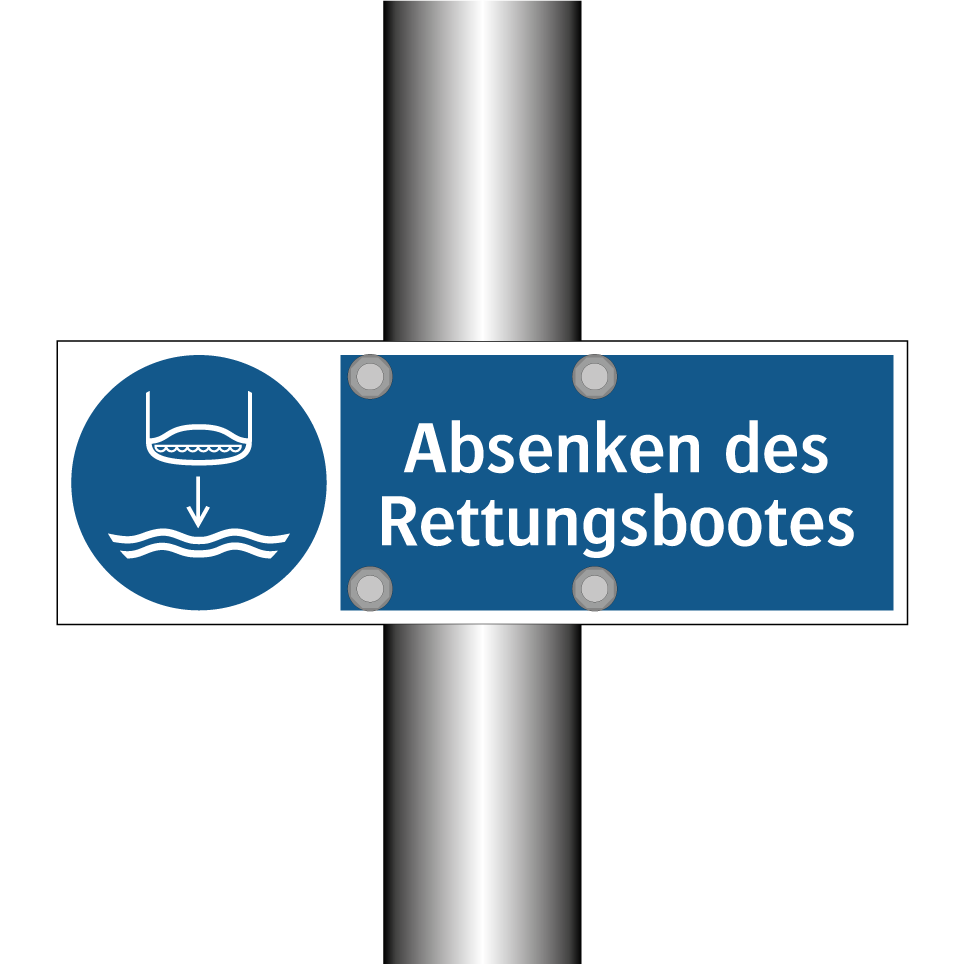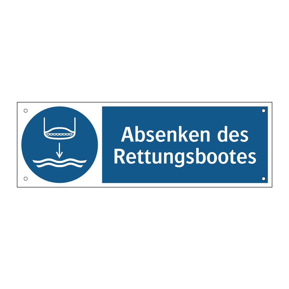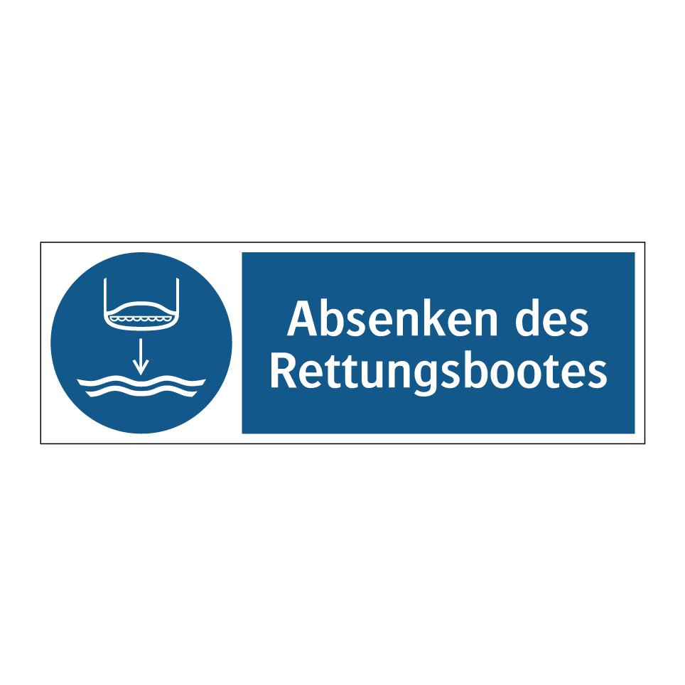 Gebotsschild mit dem Text Absenken des Rettungsbootes