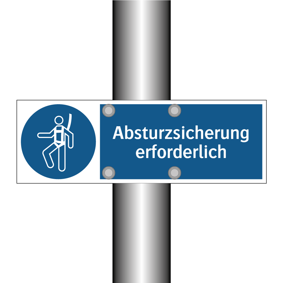 Gebotsschild mit dem Text Absturzsicherung erforderlich