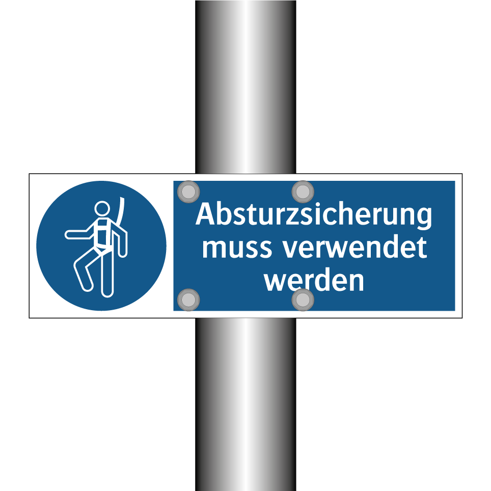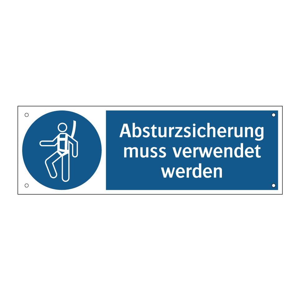 Gebotsschild mit dem Text Absturzsicherung muss verwendet werden