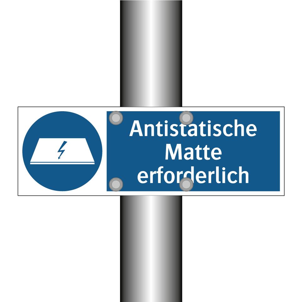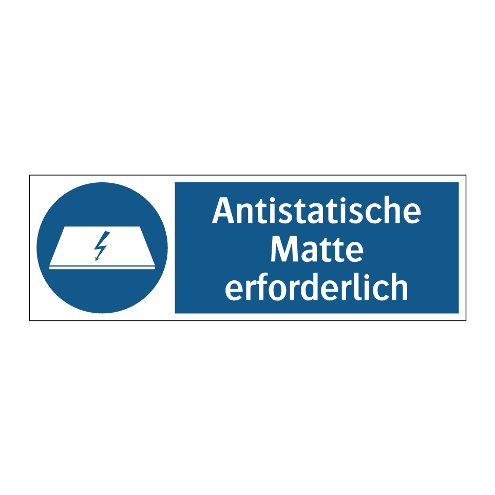 Gebotsschild mit dem Text Antistatische Matte erforderlich