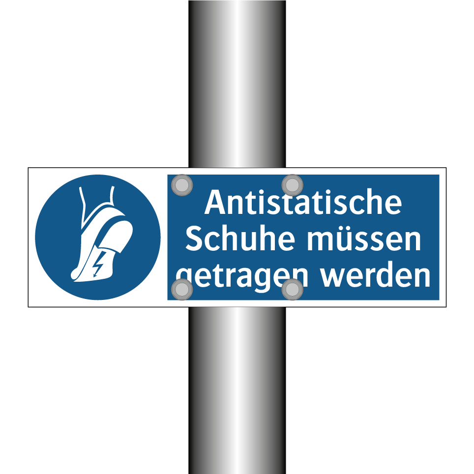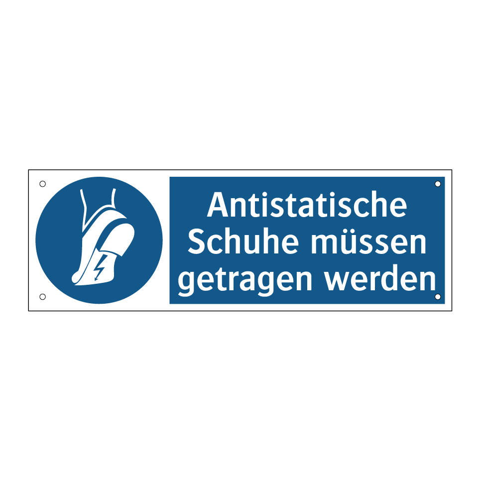 Gebotsschild mit dem Text Antistatische Schuhe müssen getragen werden