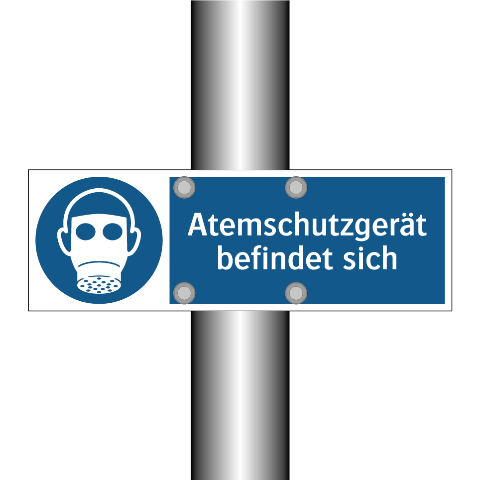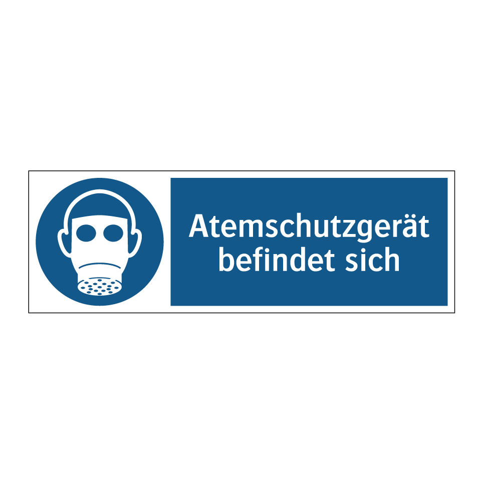 Gebotsschild mit dem Text Atemschutzgerät befindet sich