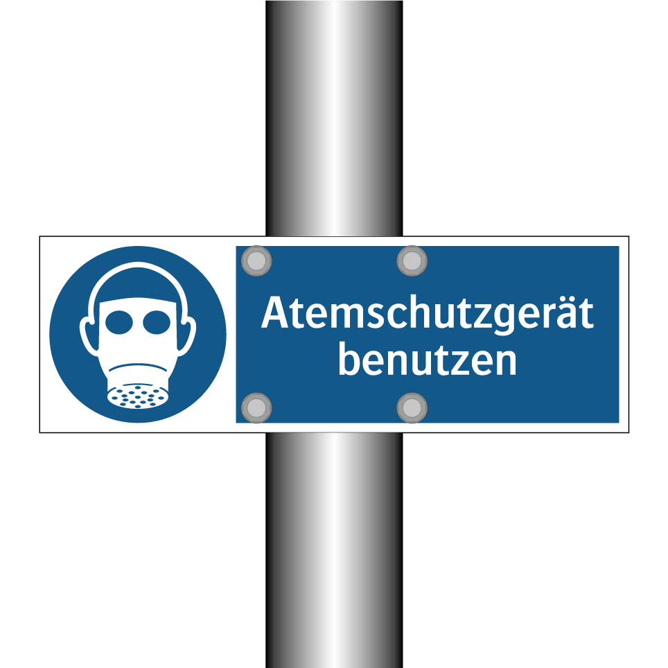 Gebotsschild mit dem Text Atemschutzgerät benutzen