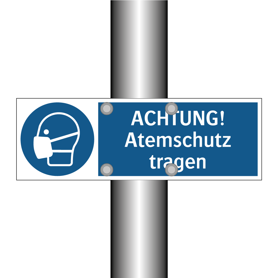 Gebotsschild mit dem Text ACHTUNG! Atemschutz tragen