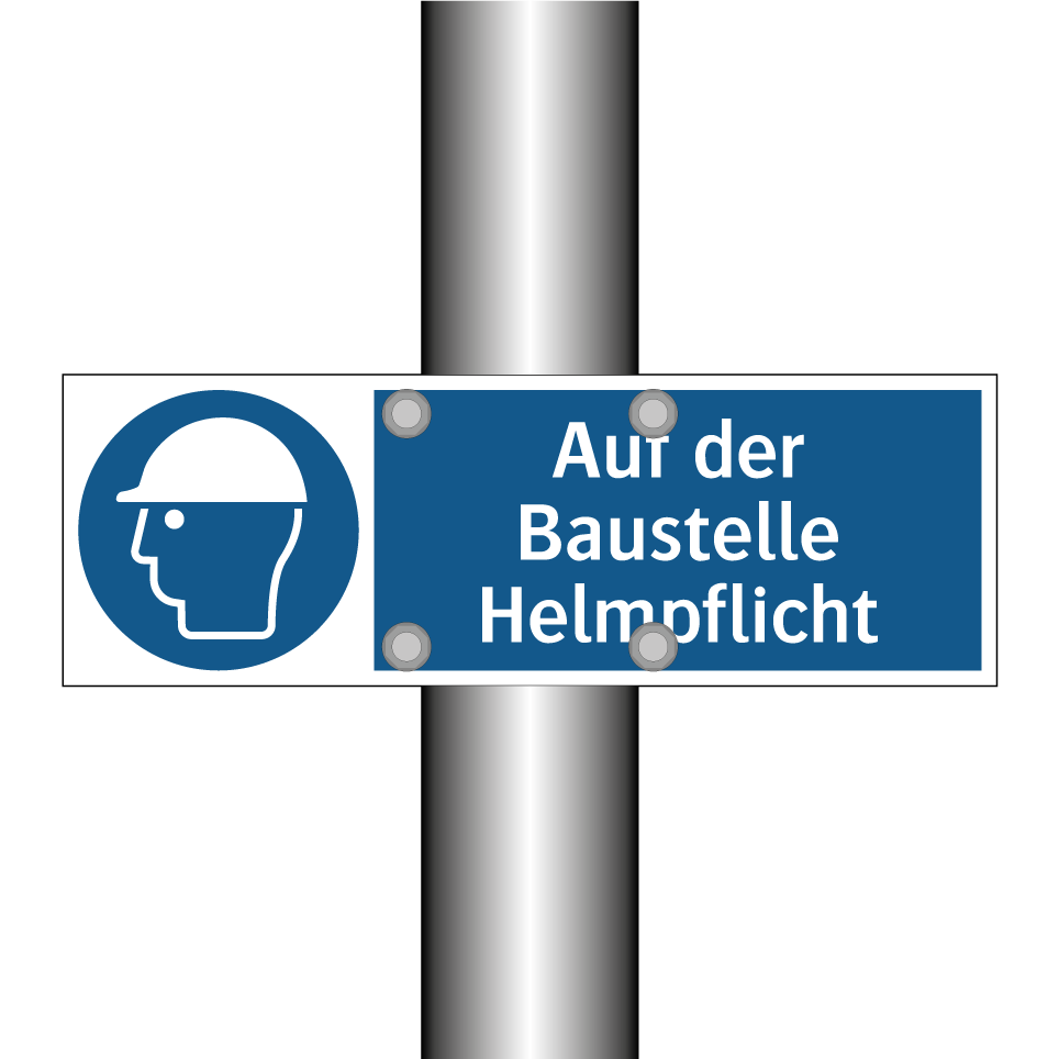 Gebotsschild mit dem Text Auf der Baustelle Helmpflicht