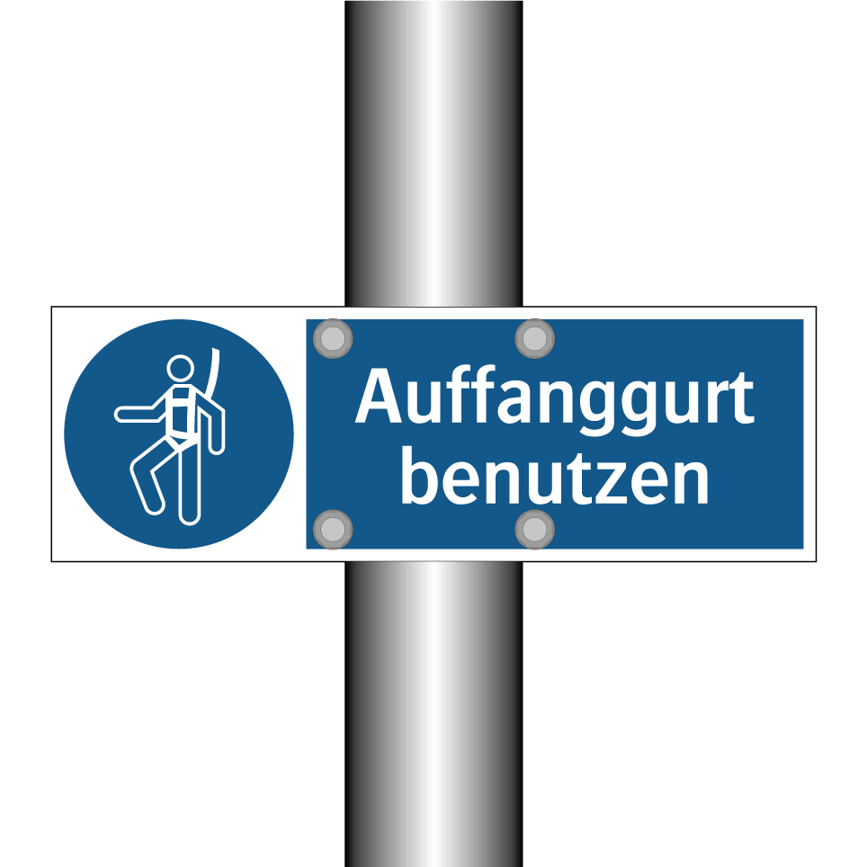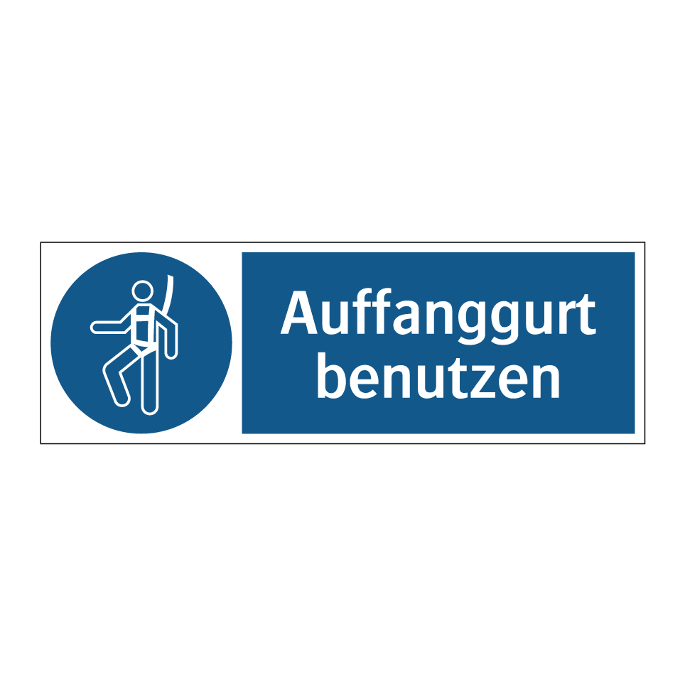 Gebotsschild mit dem Text Auffanggurt benutzen